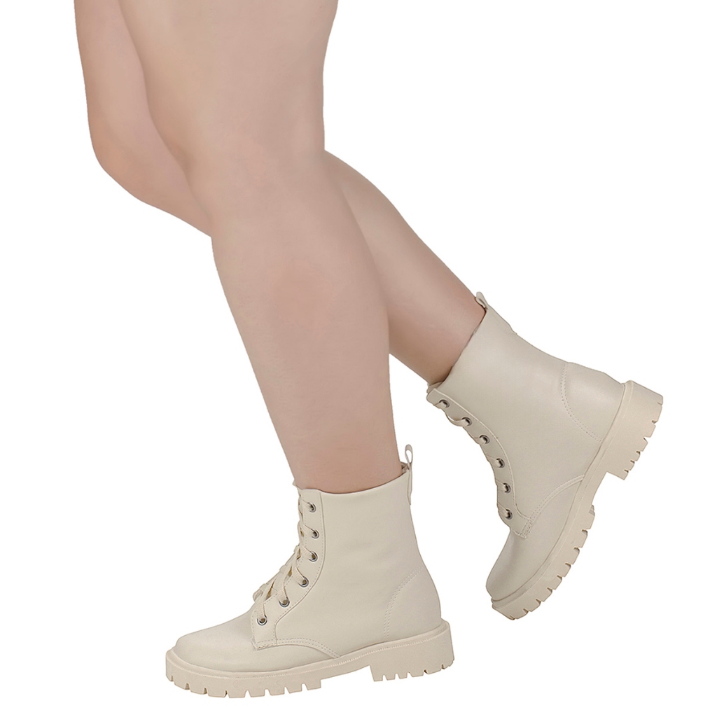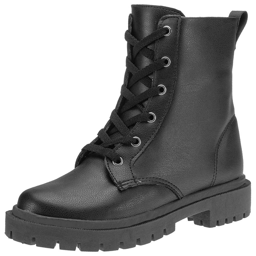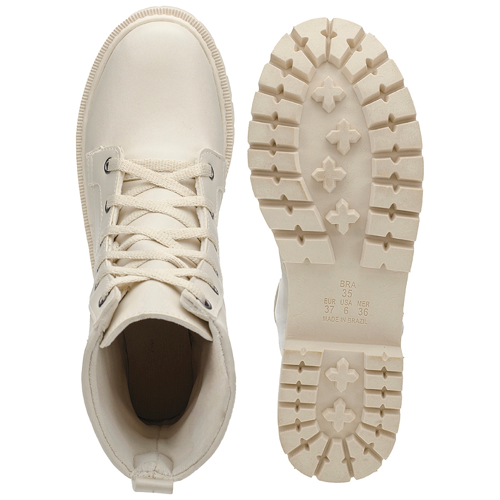 Bota Feminina Coturno Militar Cano Curto Shekinah Sola Tratorada Confortável Lançamento Coleção