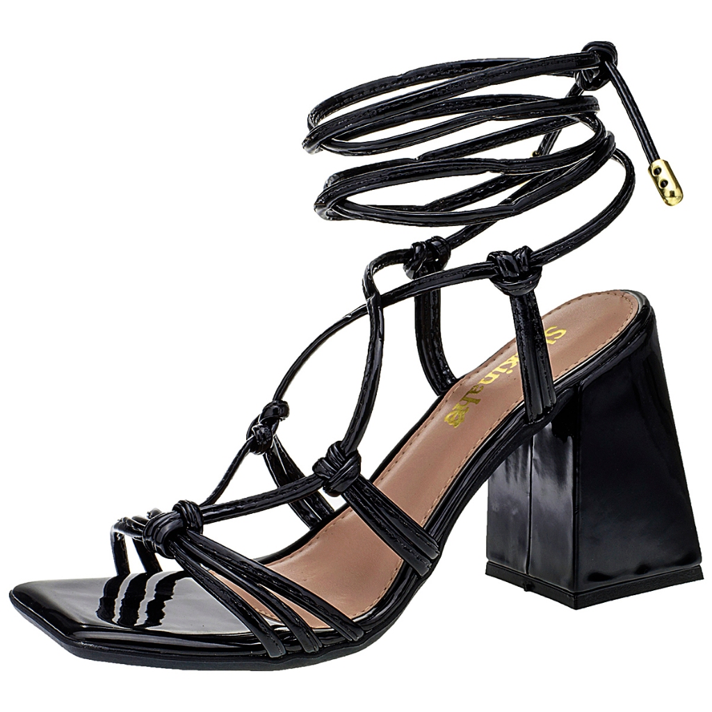 Sandália Feminina Salto Bloco Grosso Salto Pregado Shekinah Confortável Lançamento Tiras Amarração