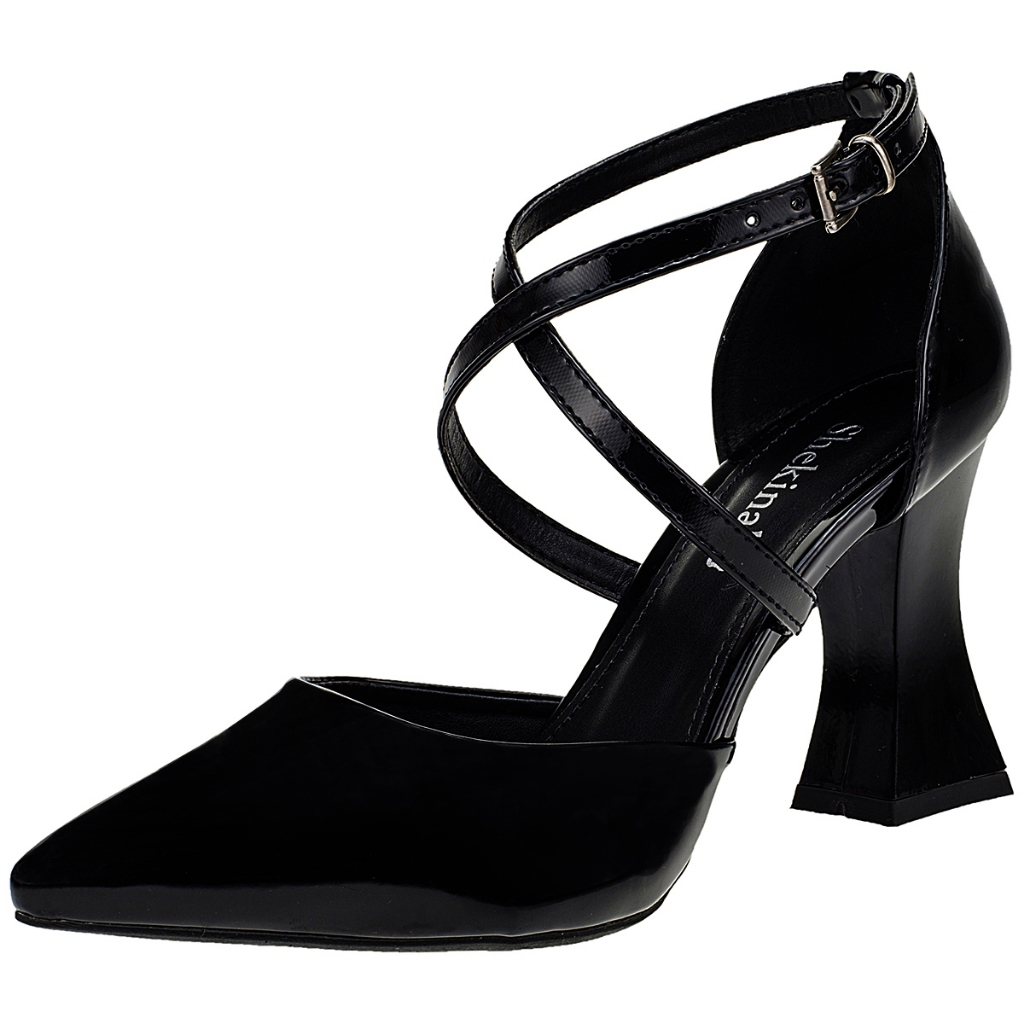 Sapato Feminino Scarpin Saia e Blusa Bico Fino Salto Taça Geométrico Shekinah Moda