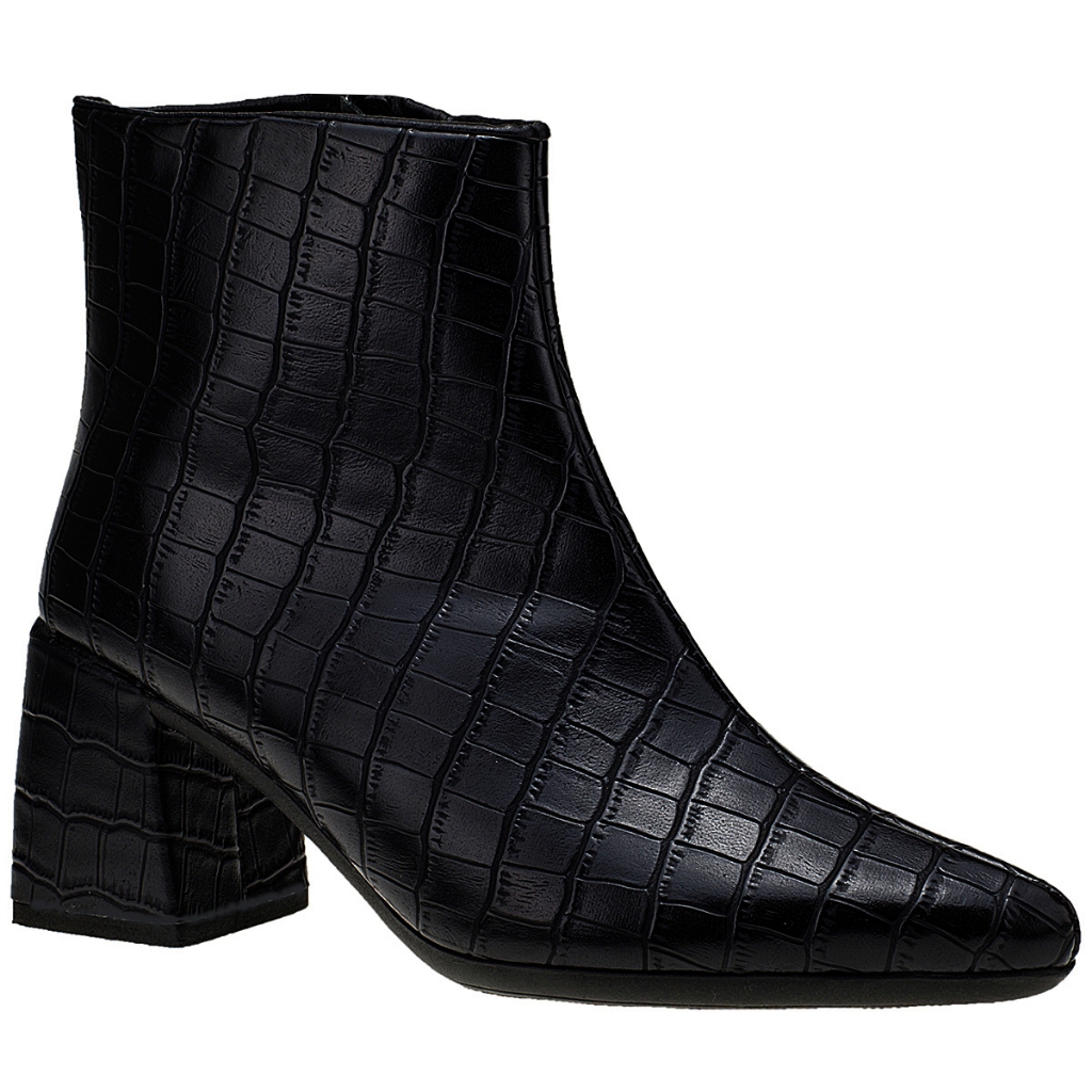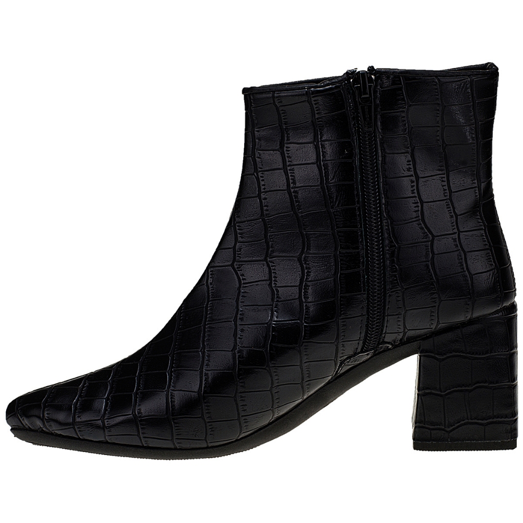 Bota Bico Fino Feminina Salto Baixo Coturno Shekinah Croco Confortável Clássica Moda