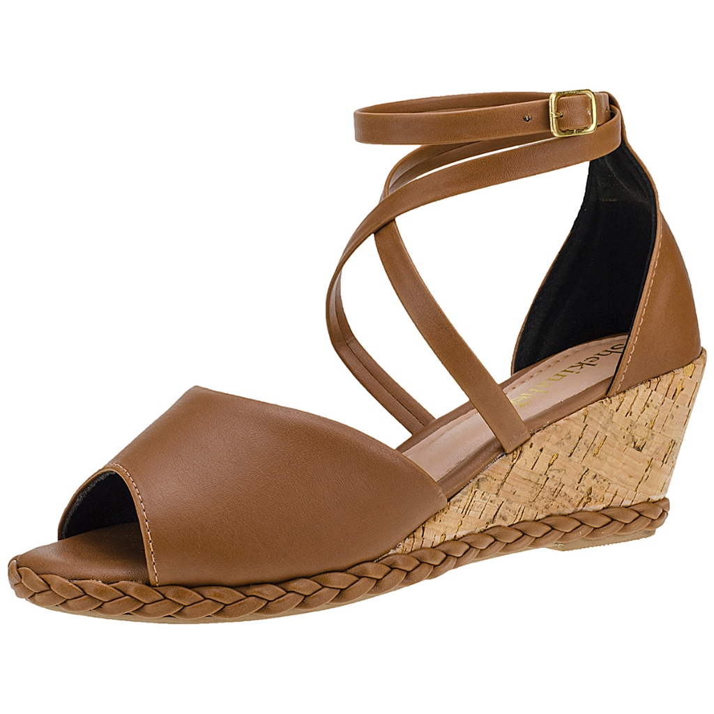 Sandália Anabela Feminina Sapato Salto Alto Espadrille Shekinah Tiras Amarração Tricê Cortiça