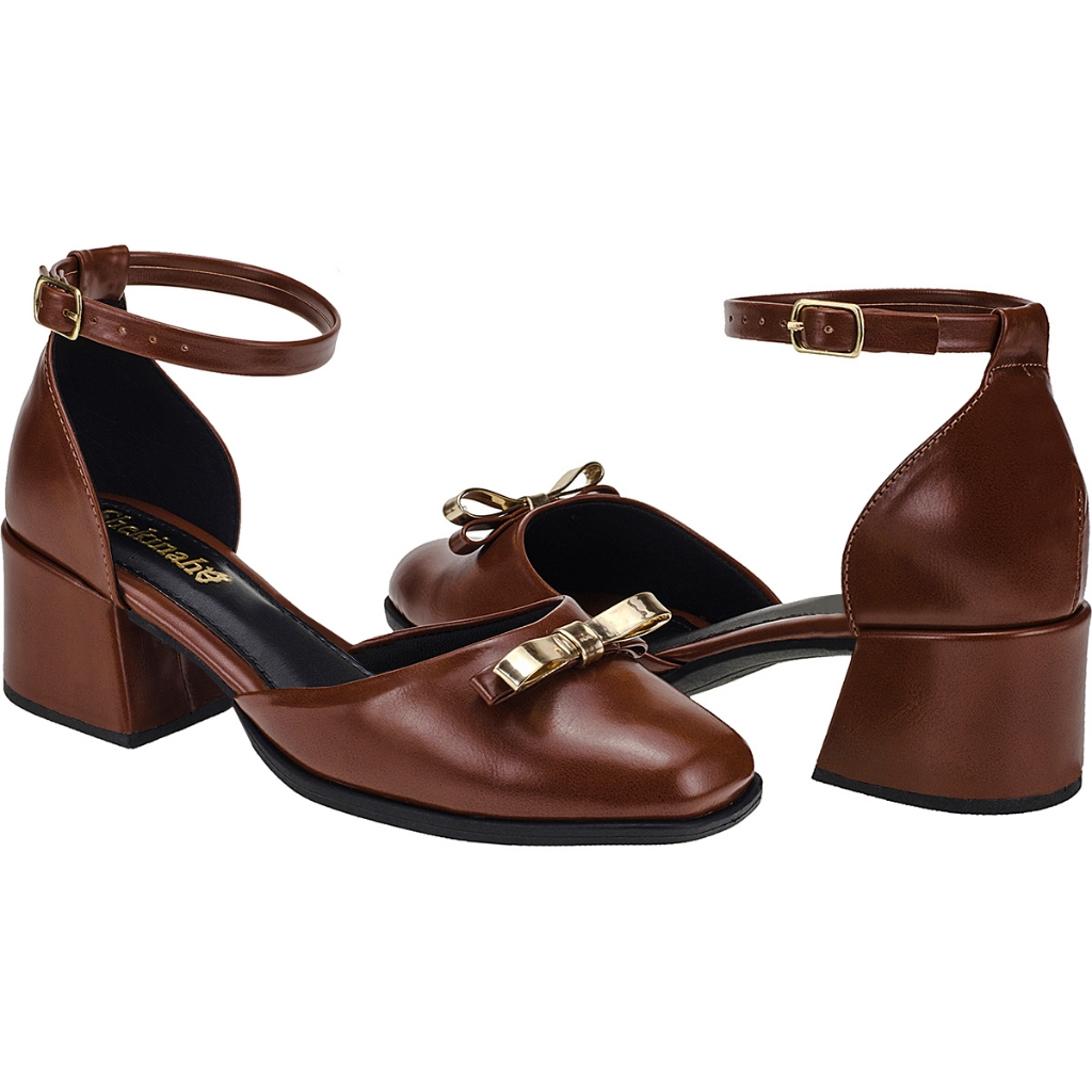 Sapato Scarpin Feminino Boneca Mary Jane Shekinah Moda Evangélica Enfeite Laçinho Saia e Blusa Moda