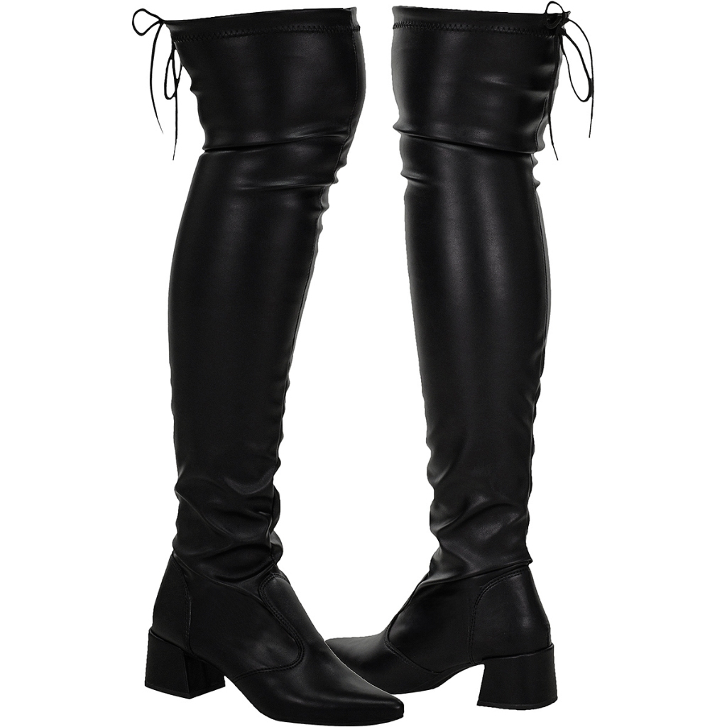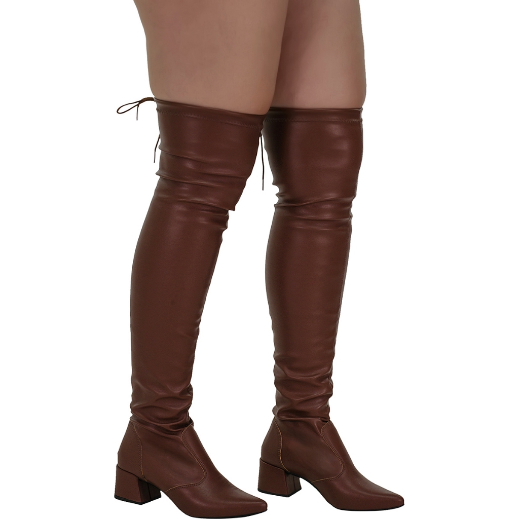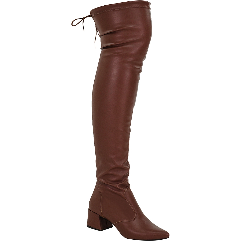 Bota Feminina Bico Fino Over The Knee Stretch Com Elástico Salto Bloco Shekinah Cano Longo Enrrugada