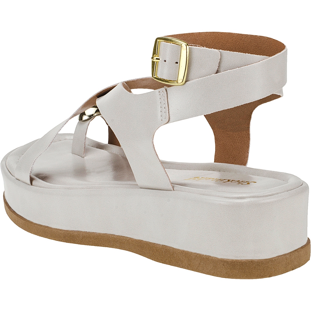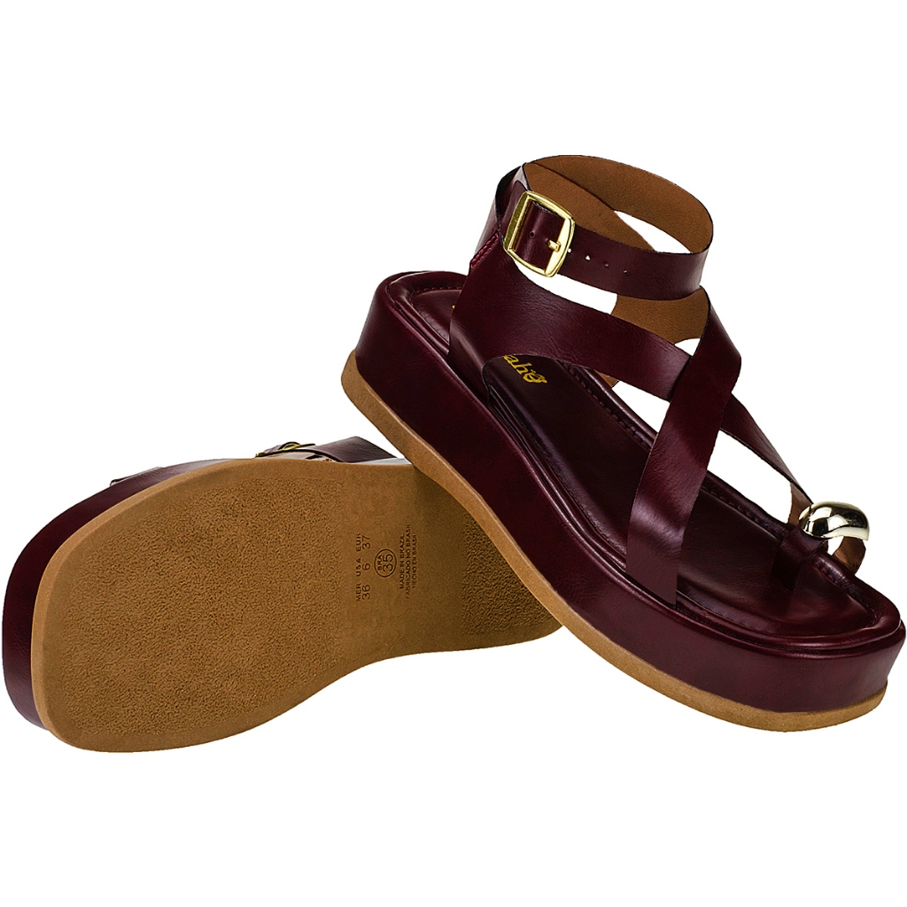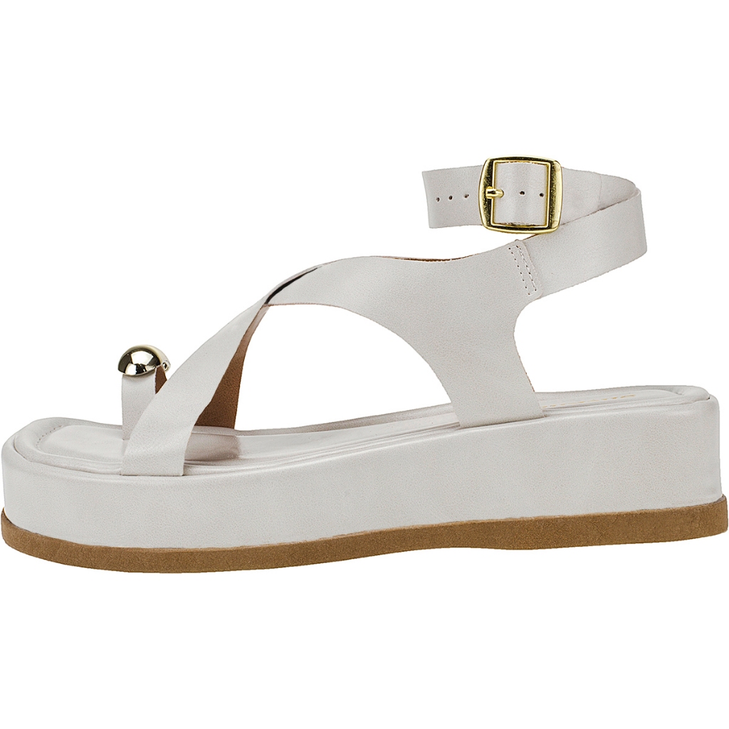Sandália Feminina Flatform Papete Plana Shekinah Confortável Tiras Fivela Enfeite Metalizado Chique