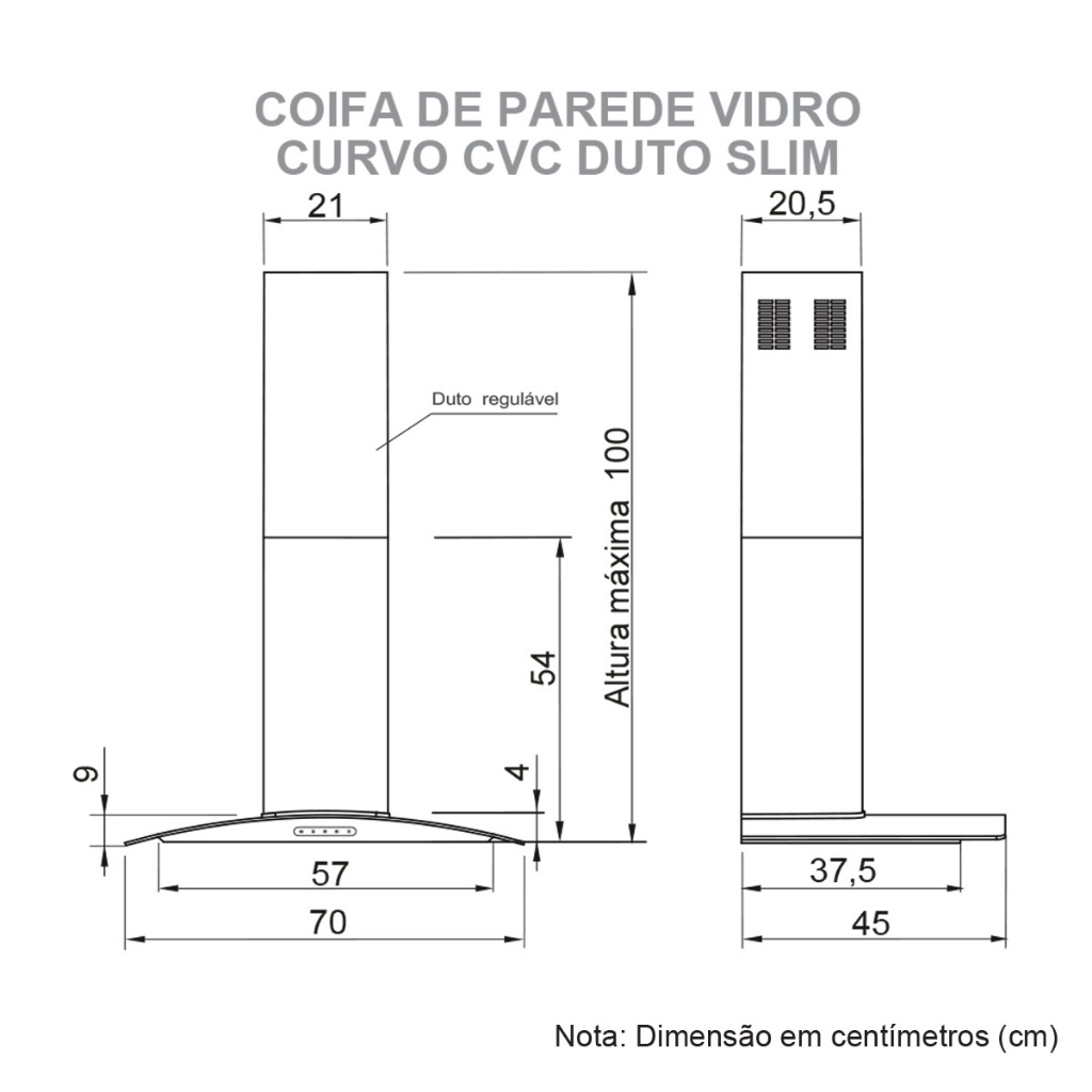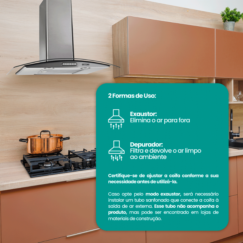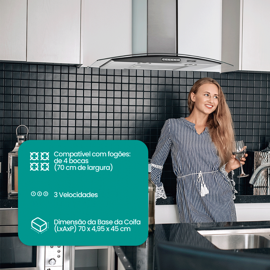 Coifa de Parede Vidro Curvo Slim Inox 70cm 4 Bocas Fogatti 110V