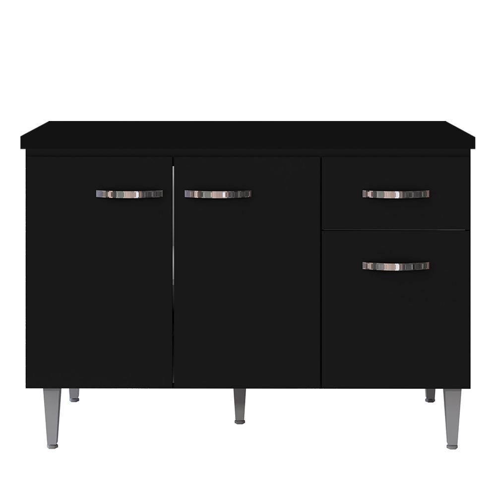 Balcão Gabinete Para Pia Com Tampo 120cm 3 Portas e 1 Gaveta Gabriela Preto - AJL Móveis