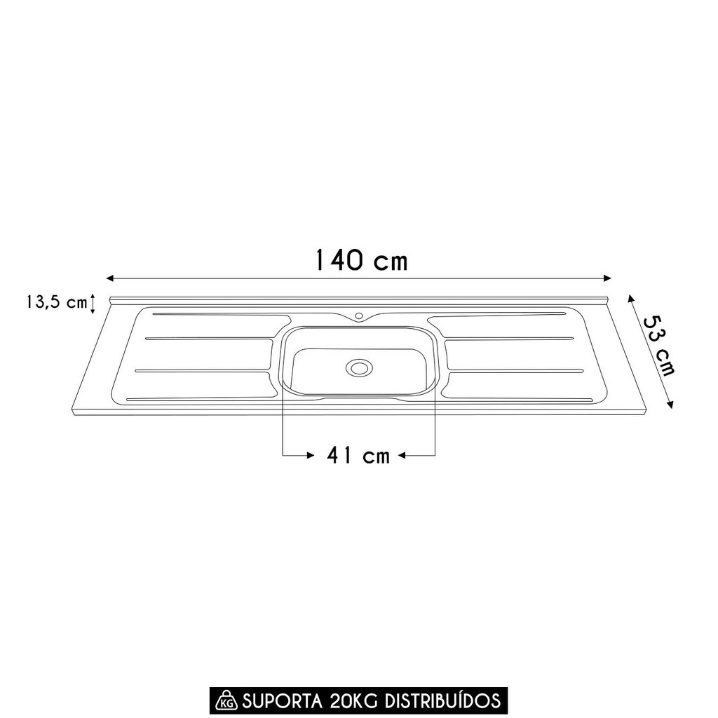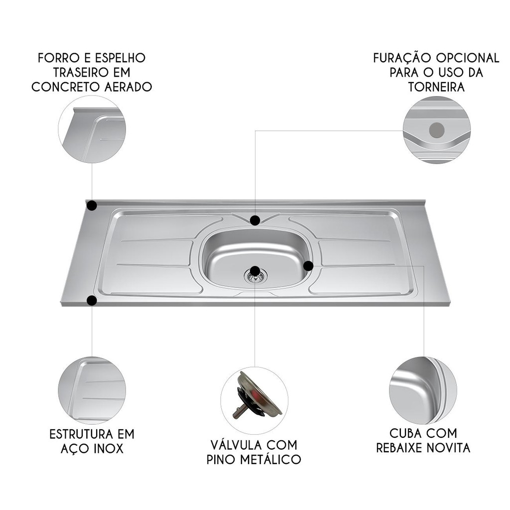 Pia de Cozinha com Cuba e Válvula Bali 140cm Aço Inox - Ghel Plus