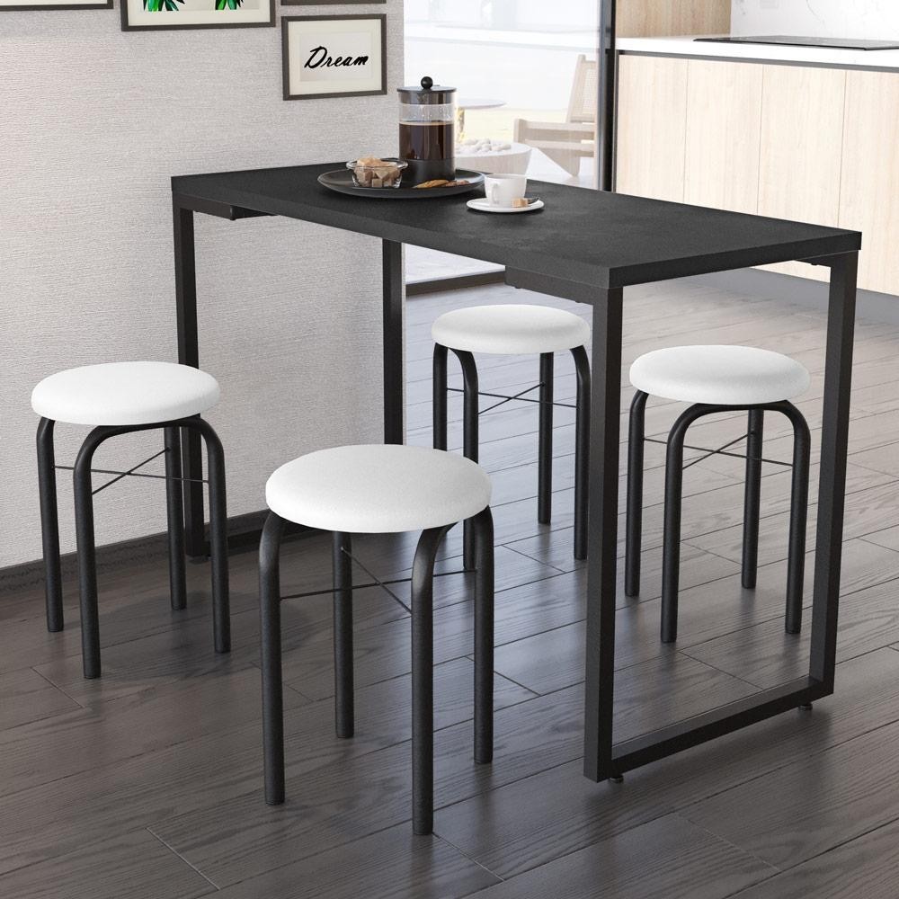 Conjunto Mesa de Cozinha Prattica Industrial 120cm com 4 Banquetas F02 Preto/Branco - Mpozenato