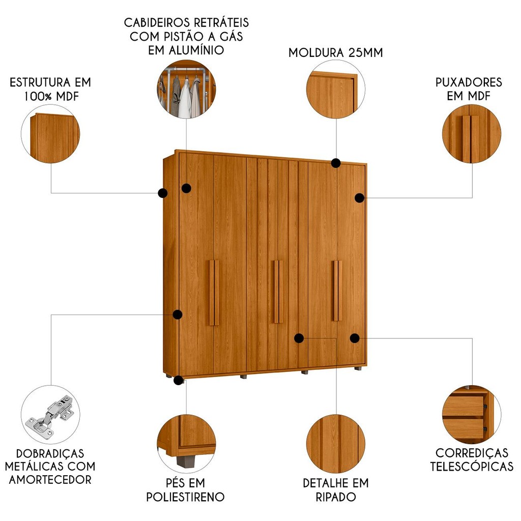 Guarda Roupa Casal 230cm Com 6 Portas Barok Cinamomo Z10 - Mpozenato