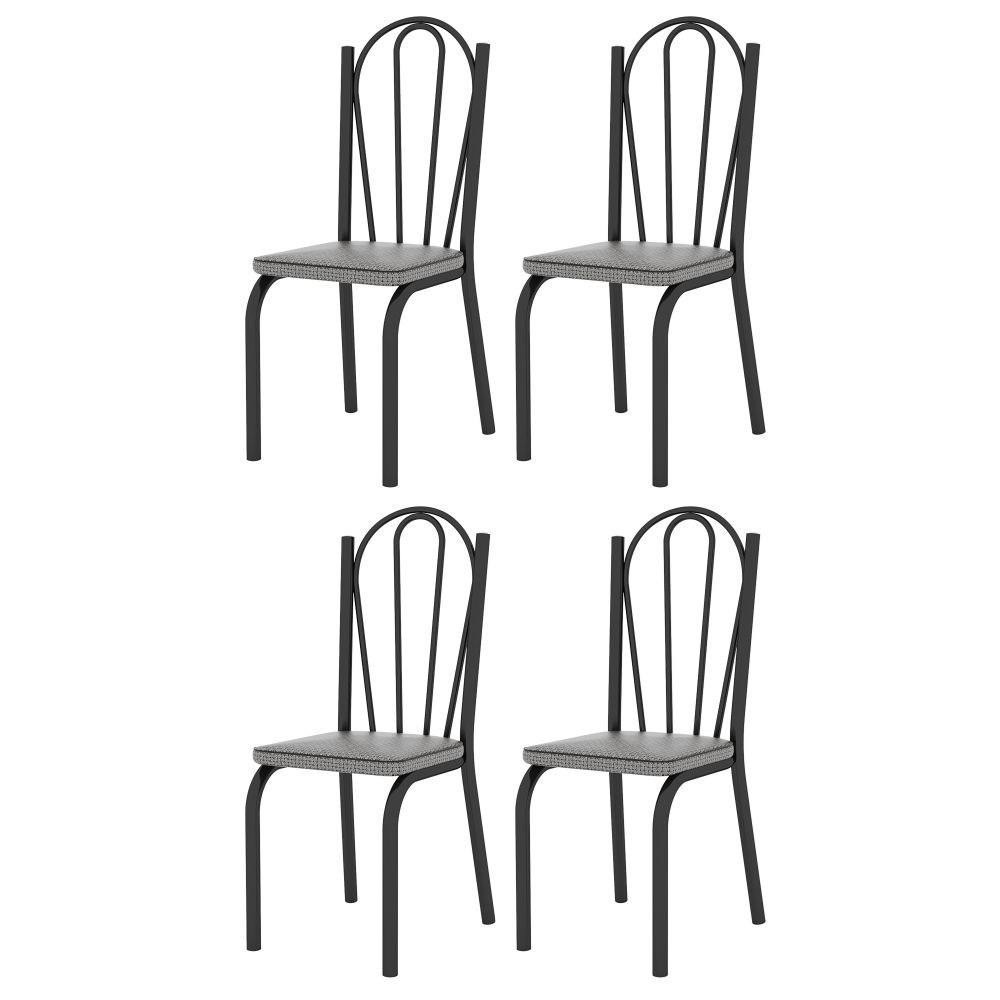 Kit 4 Cadeiras 121 Europa Preto/Platina - Artefamol