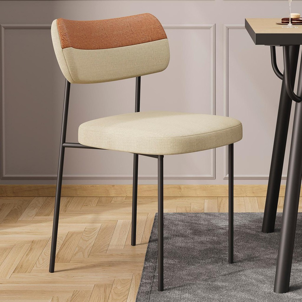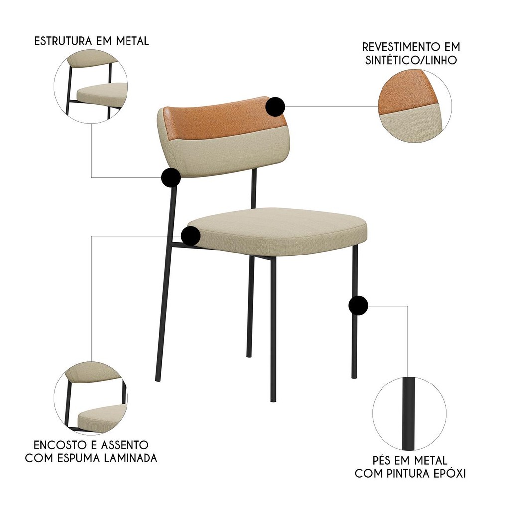 Cadeira de Jantar Estofada Kit 6 Milli A14 Linho Caramelo/Areia - Mpozenato