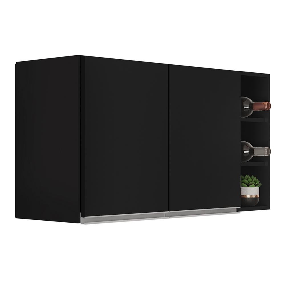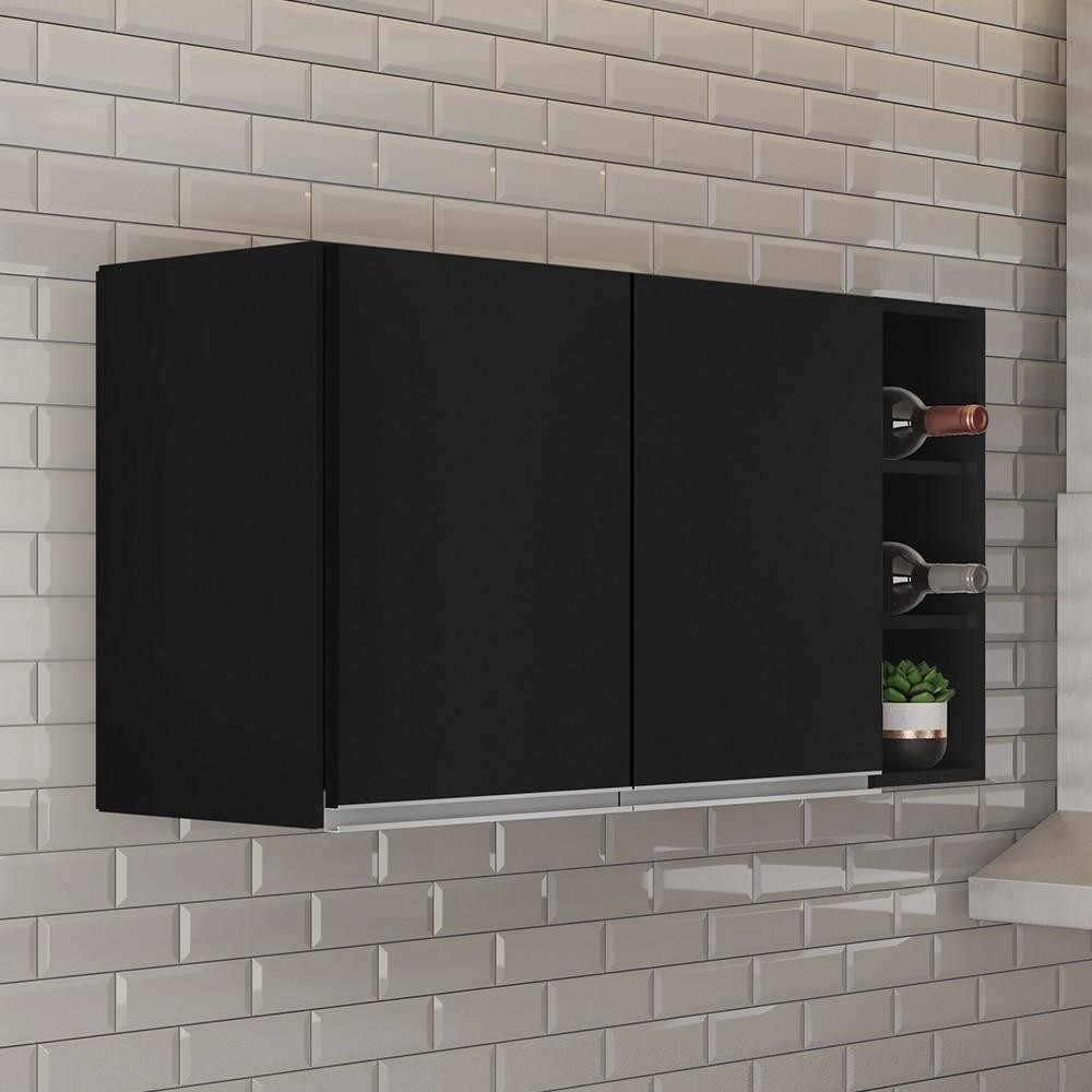 Armário de Cozinha Aéreo Califórnia 80cm e Nicho Garrafeiro 20cm Riad Preto - Lumil