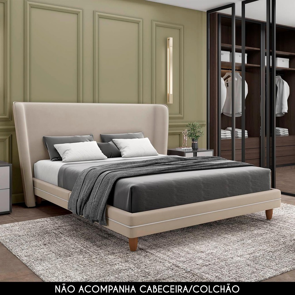 Cama Queen Base Box 160cm Many P02 Veludo Bege - Mpozenato