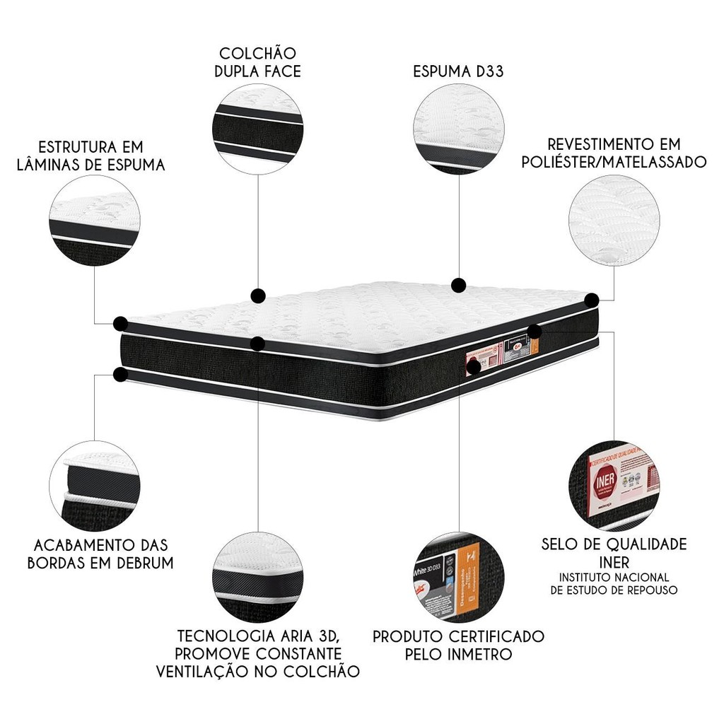 Colchão Queen Double Face Black & White Air D33 158x198x27cm - Castor