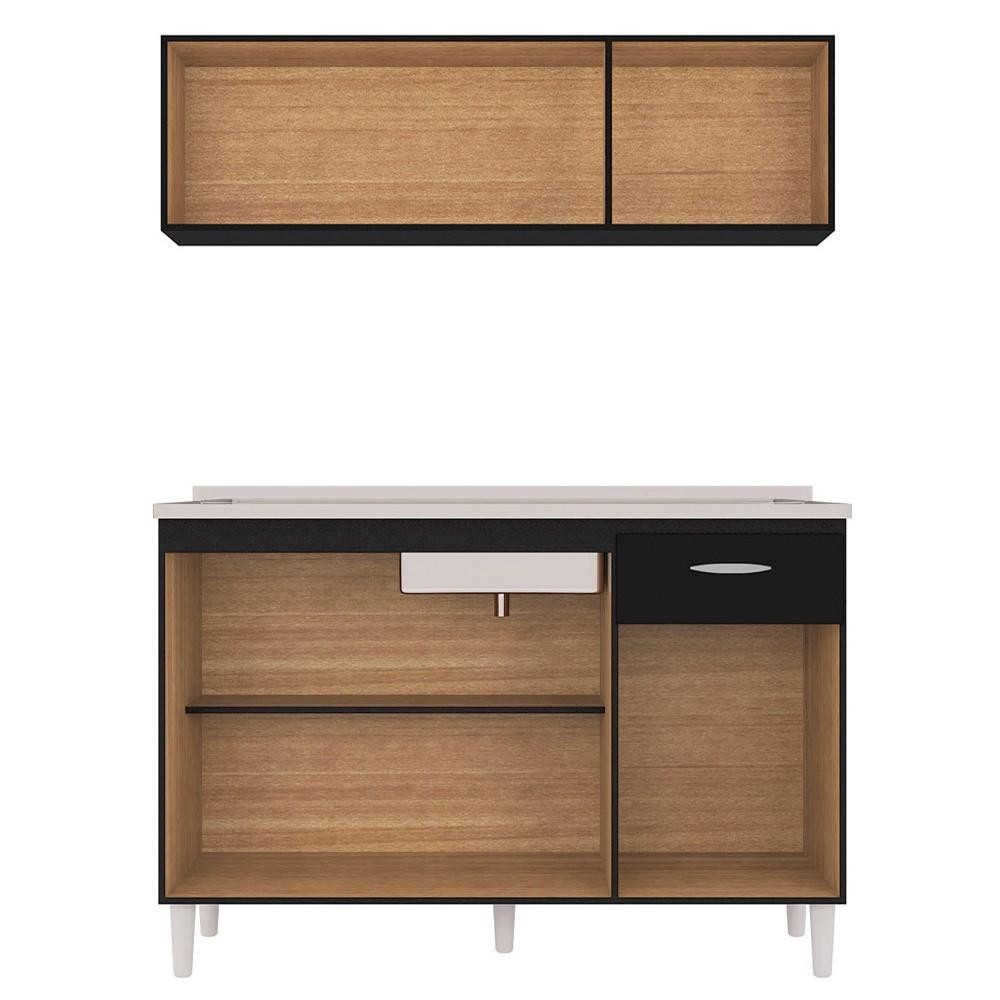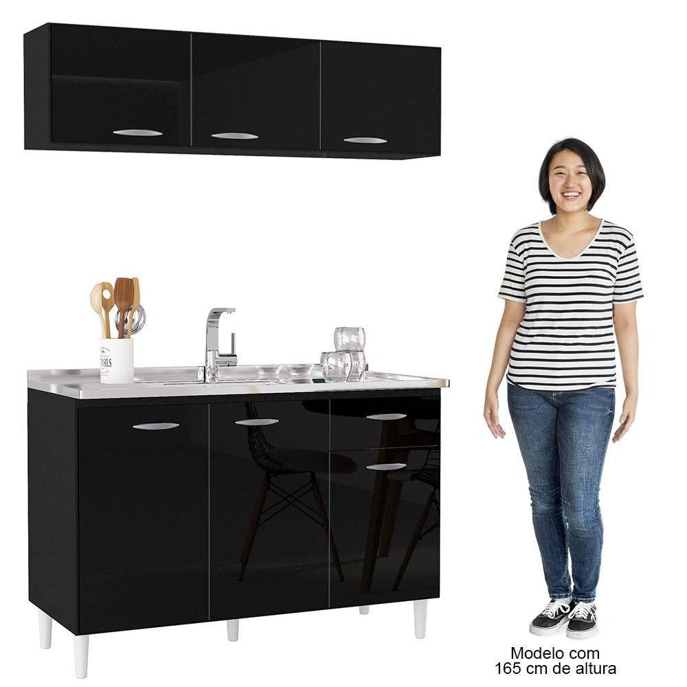 Armário Aéreo e Balcão de Cozinha com Pia Inox 120cm Classic P11 Preto - Mpozenato