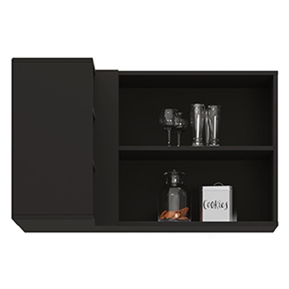 Armário Aéreo de Canto Reto Com Nicho Adega Austin Preto/Cinza - Lumil