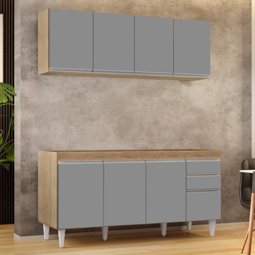 Armário Aéreo Nevada e Balcão Para Pia 160cm Arkansas Castanho/Cinza - Lumil Móveis
