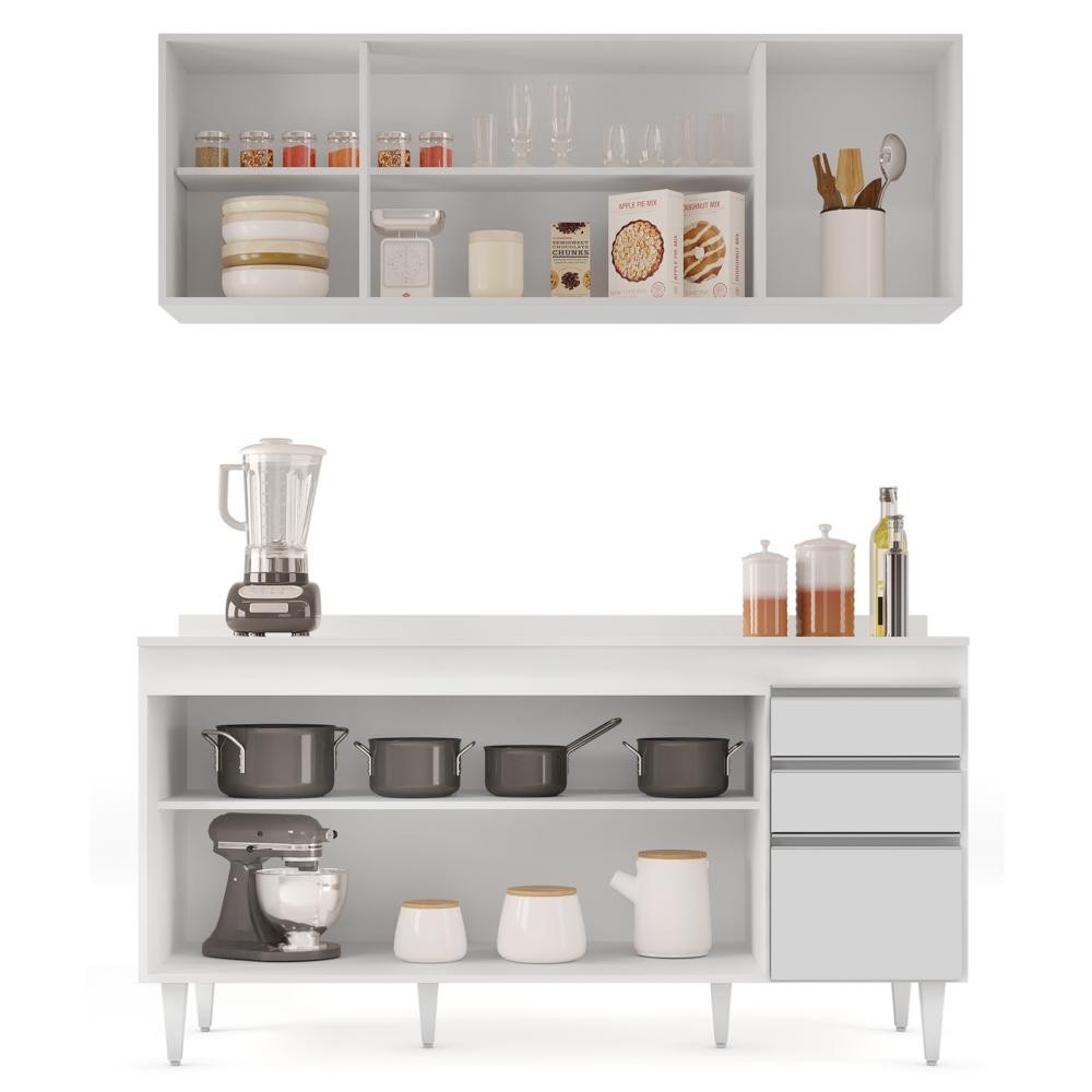 Armário Aéreo Nevada e Balcão para Pia com Tampo 160cm Arkansas Branco - Lumil