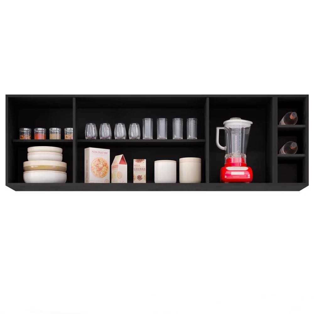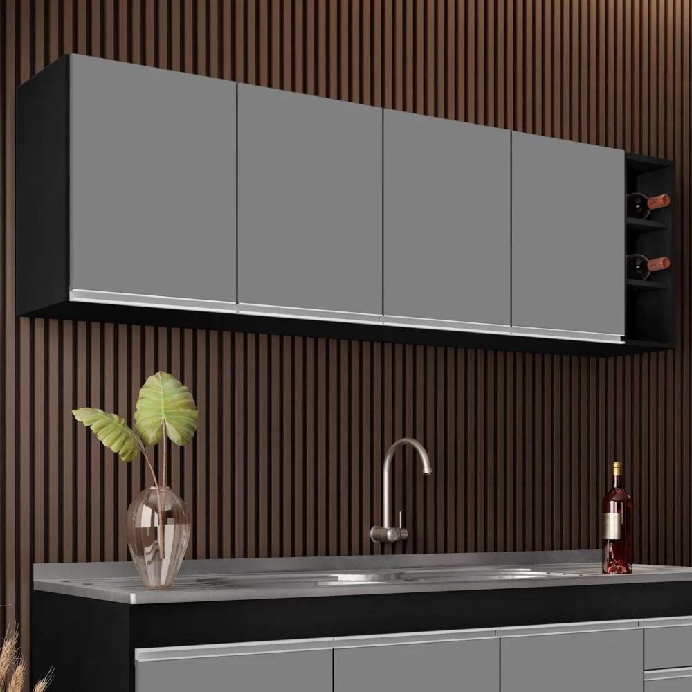 Armário Aéreo Nevada com Nicho 180cm 4 Portas Preto/Cinza - Lumil
