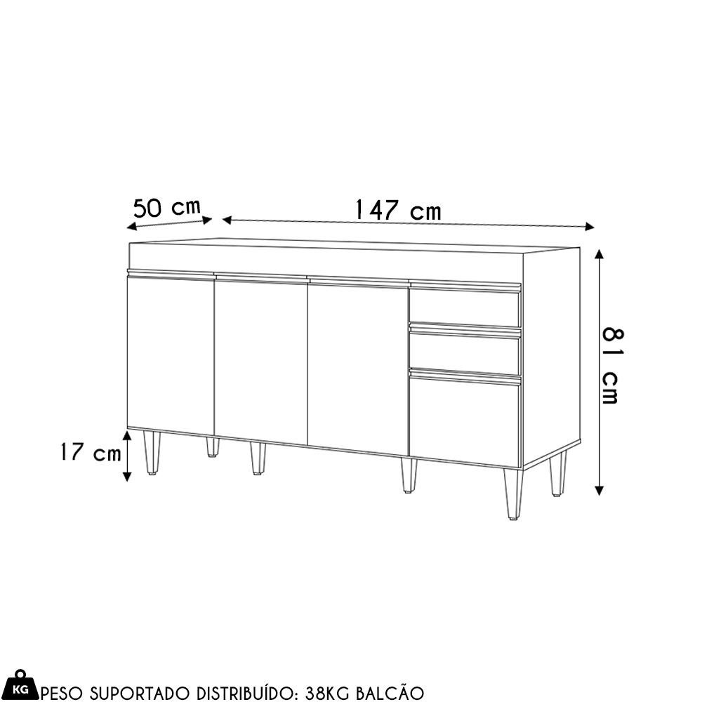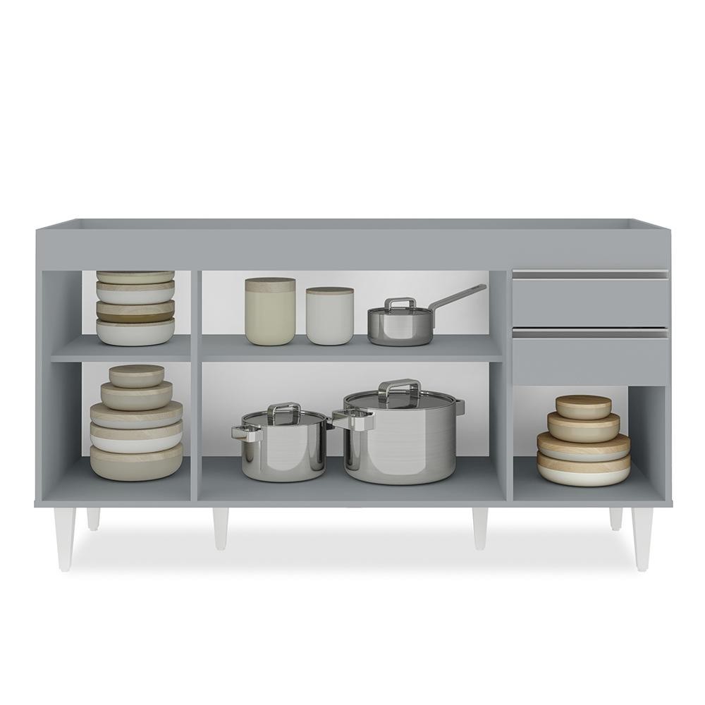 Balcão de Cozinha Para Pia 150cm 4 Portas Sem Tampo Marrocos Cinza Claro - Lumil