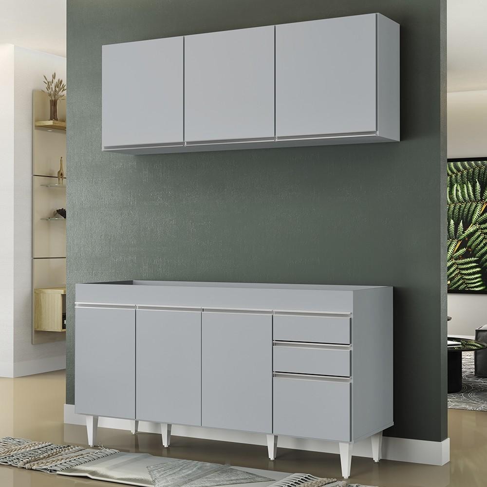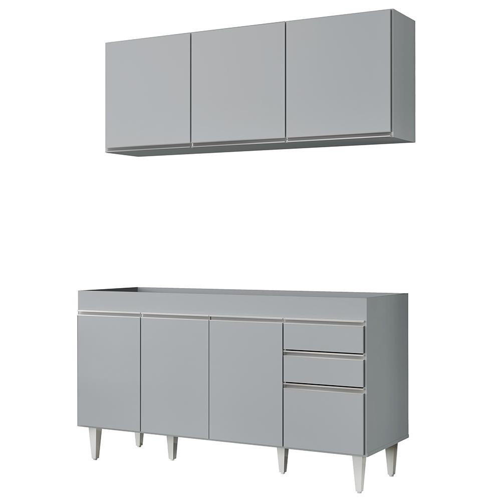 Armário de Cozinha Argélia e Balcão Gabinete 150cm sem Tampo Marrocos Cinza Claro - Lumil