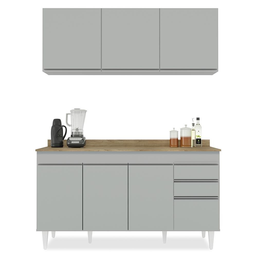 Armário de Cozinha Argélia e Balcão com Tampo 150cm Marrocos Cinza Claro/Castanho - Lumil