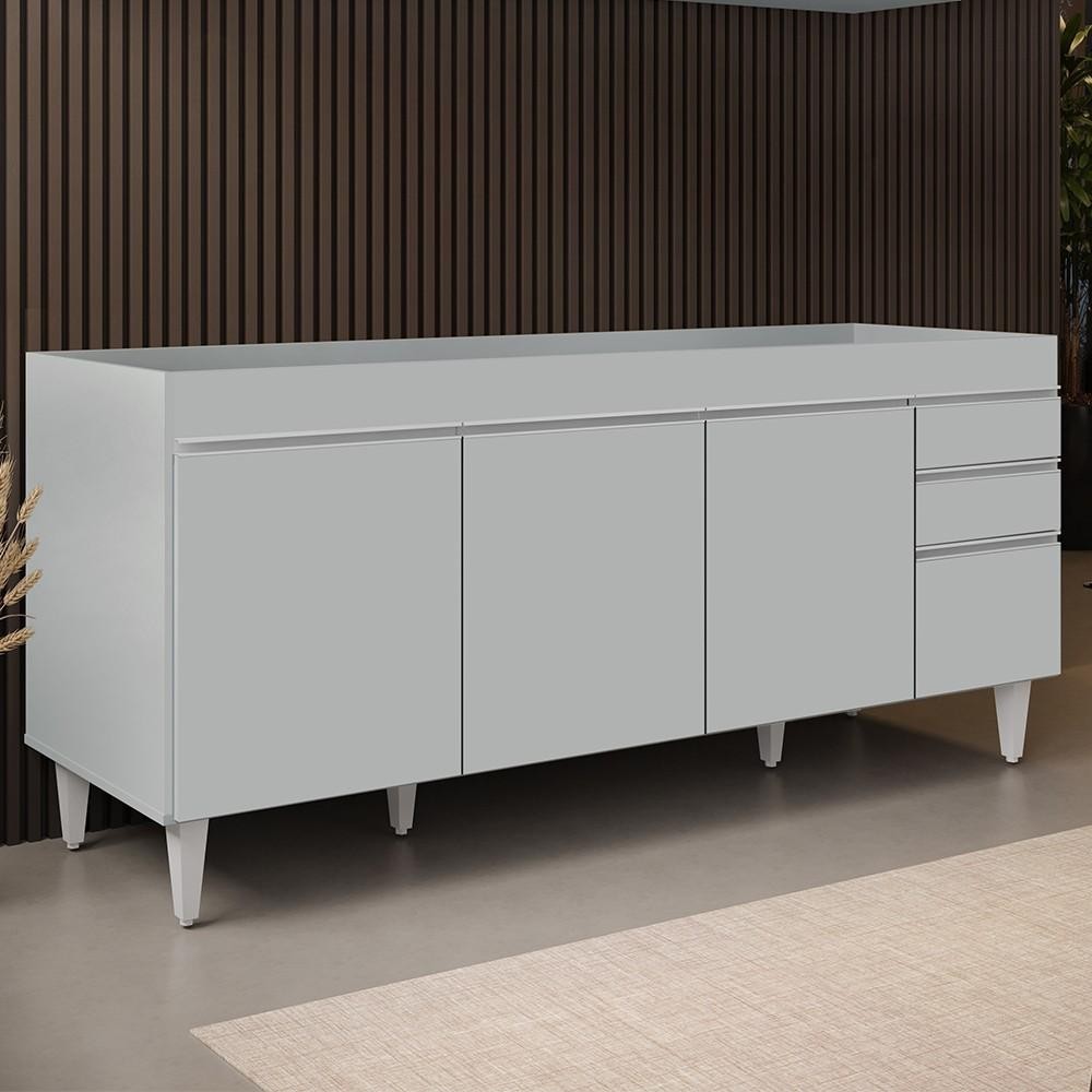 Balcão de Cozinha Para Pia 180cm 4 Portas Sem Tampo Dallas Cinza Claro - Lumil