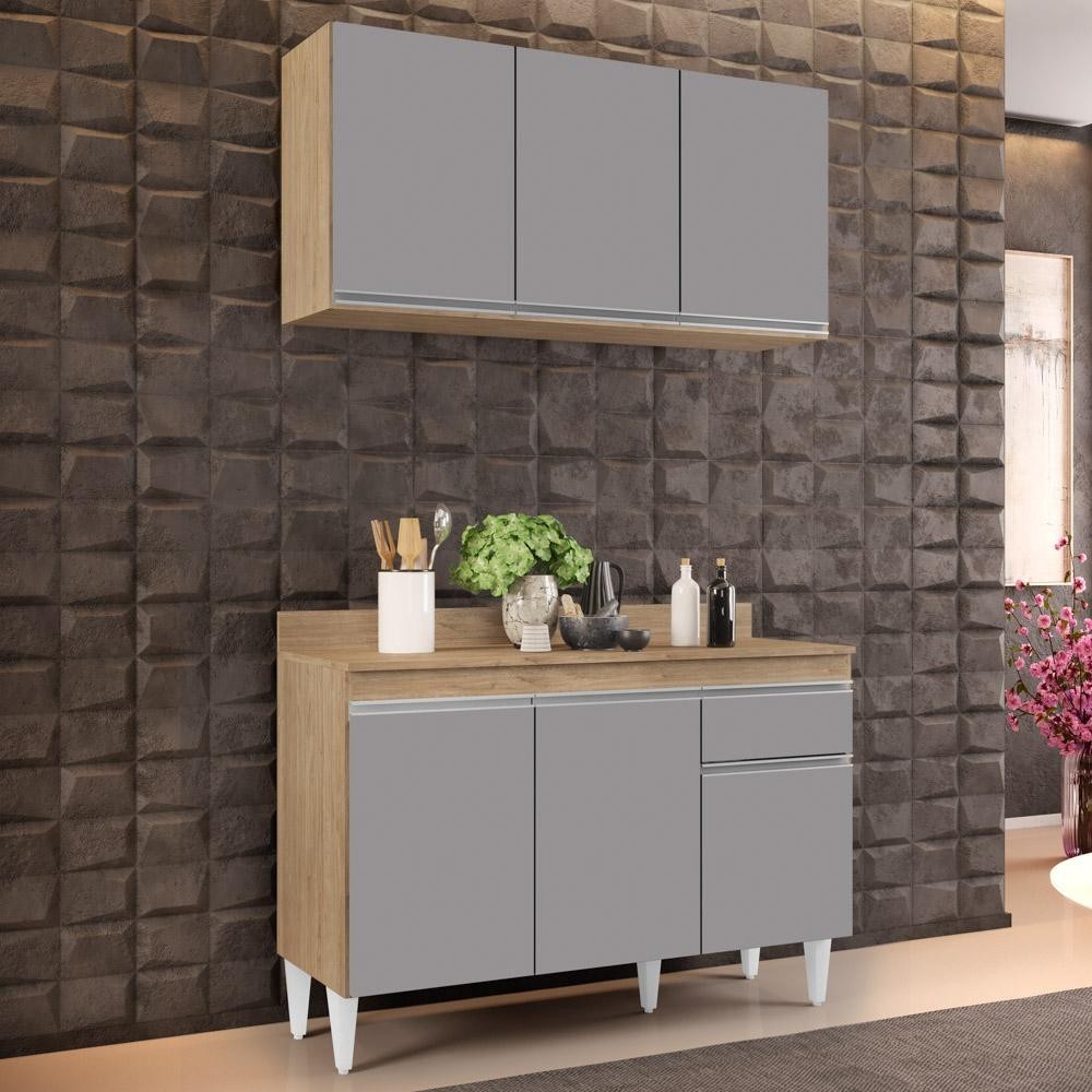 Armário Aéreo Virgínia e Balcão com Tampo 120cm Arizona Castanho/Cinza - Lumil