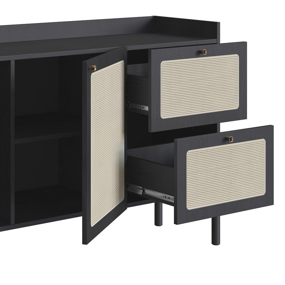 Balcão Aparador Buffet Pés de Madeira Arlo A10 Nero/Preto - Mpozenato