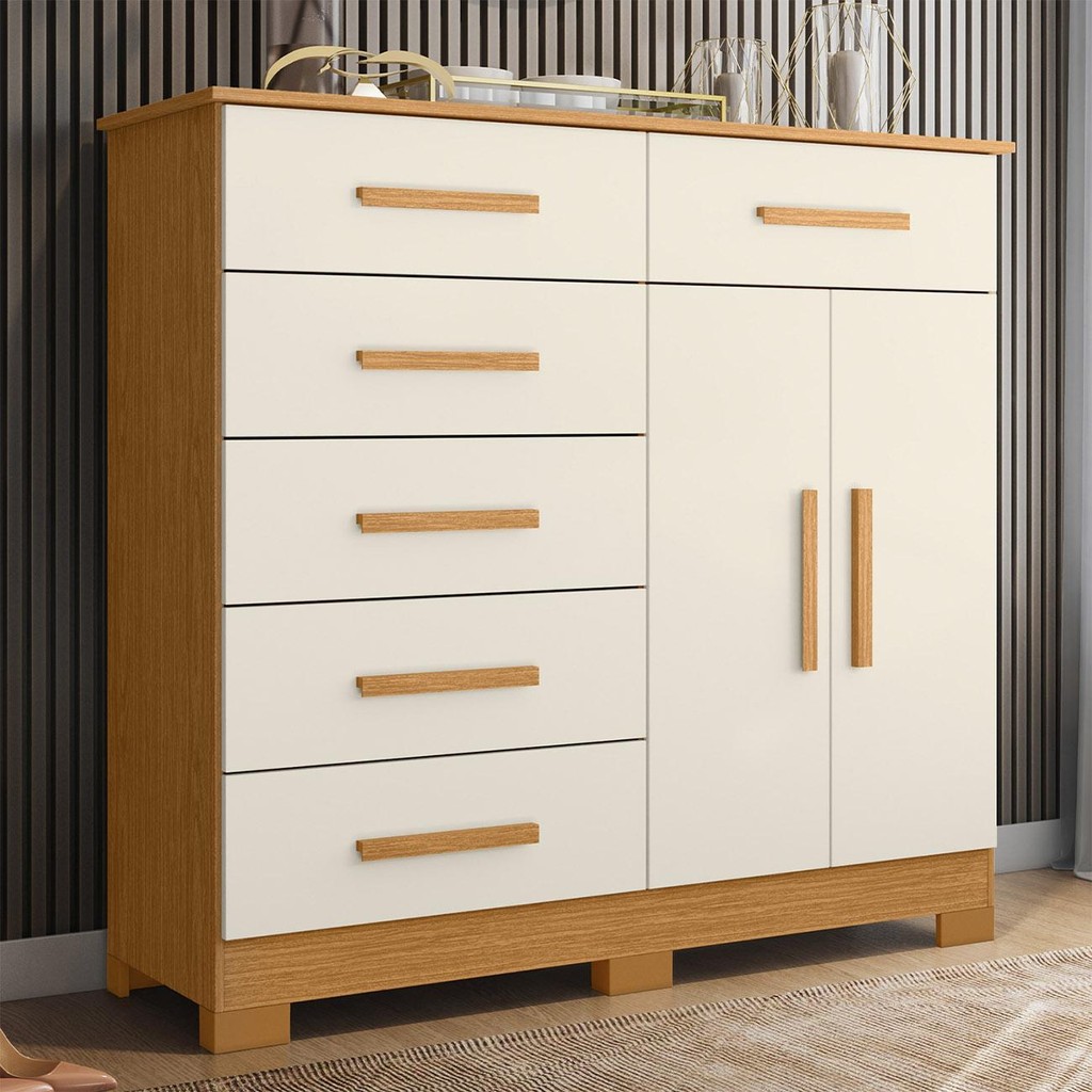 Cômoda Para Quarto 2 Portas 124cm Ester A02 Off/Cinamomo - Mpozenato
