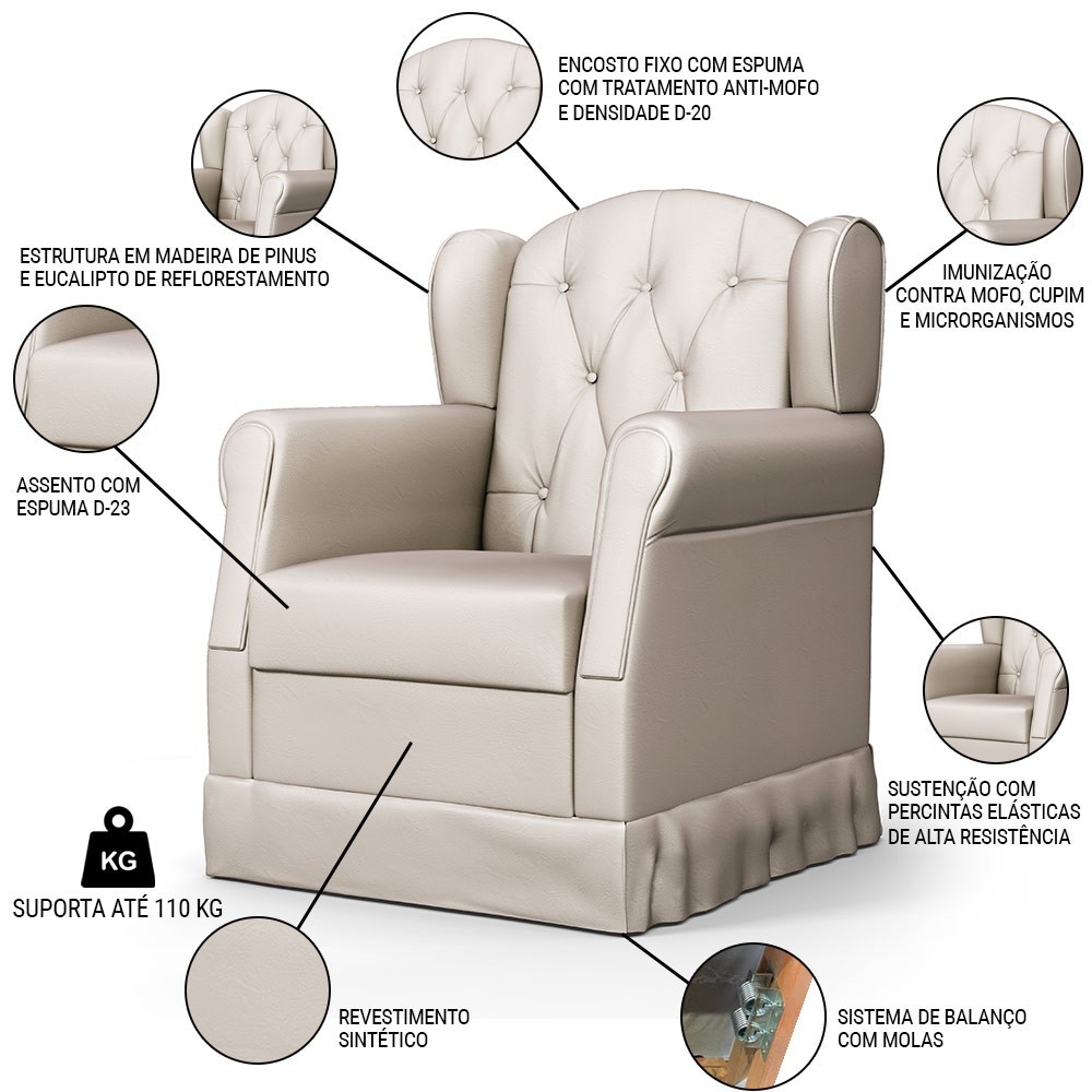Poltrona de Amamentação e Descanso com Balanço e Puff Lucy P04 Sintético Bege - Mpozenato