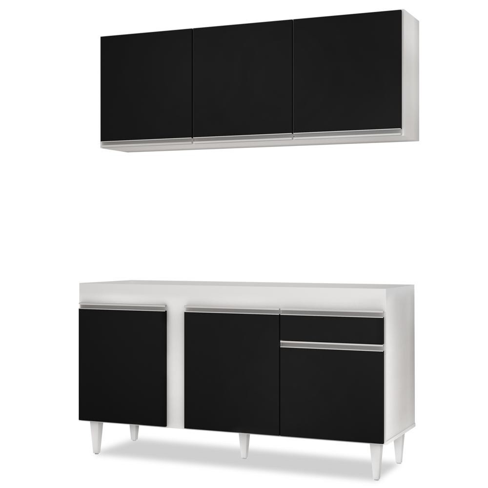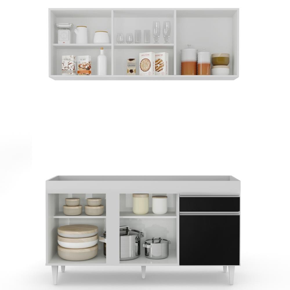 Armário Aéreo Argélia e Balcão Para Pia 150cm Dakota Branco/Preto - Lumil Móveis