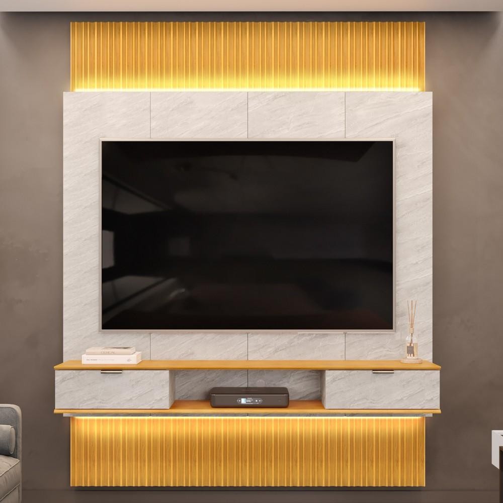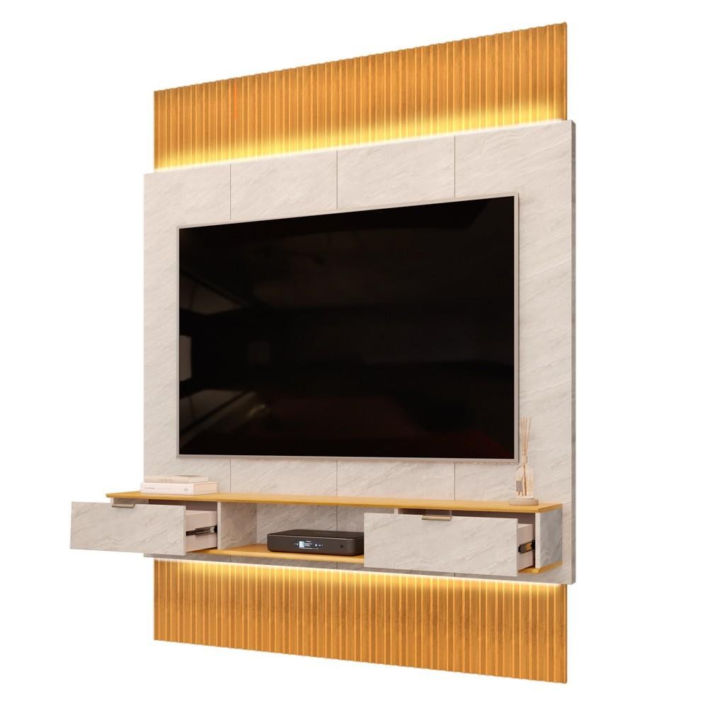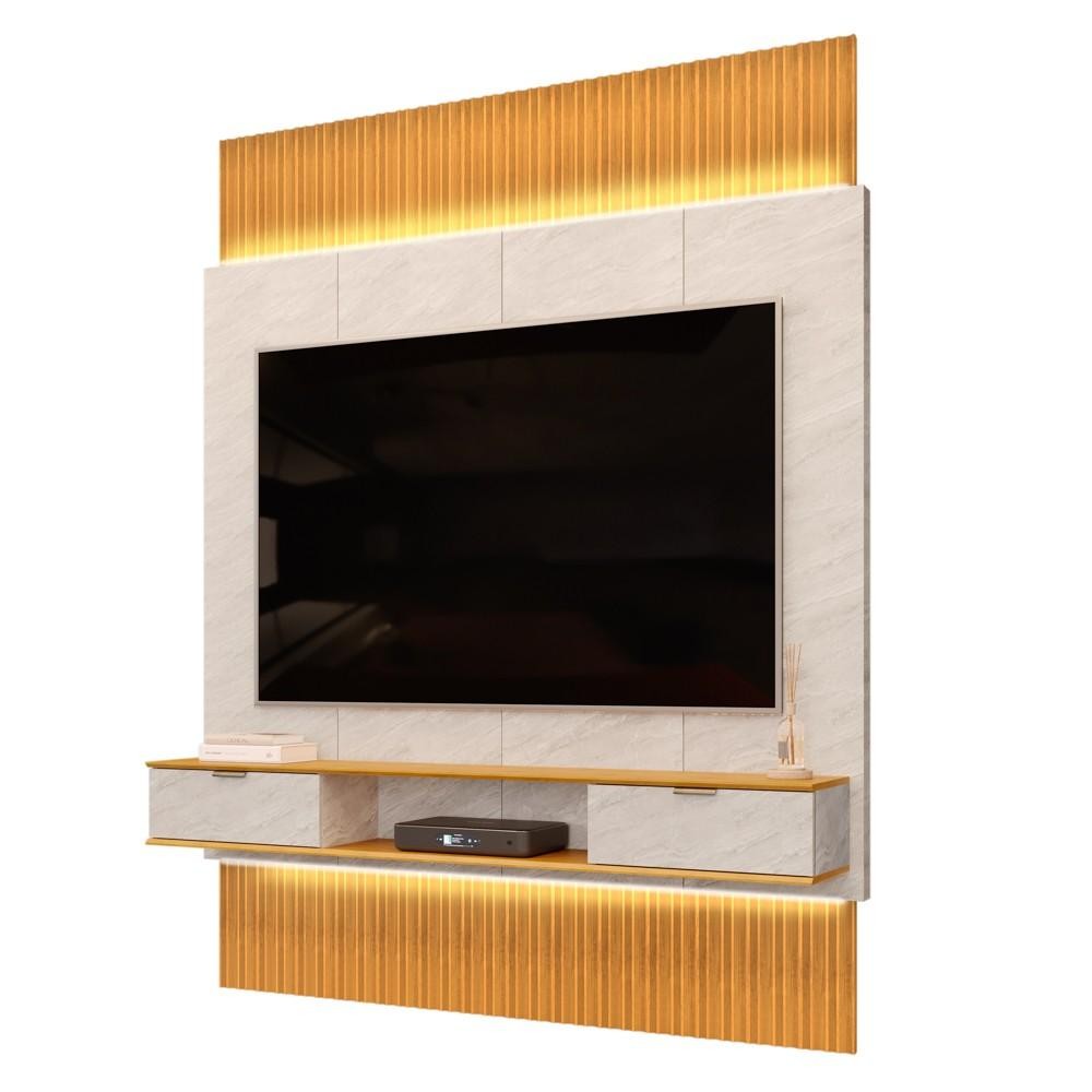 Painel Para TV 75 Pol Canelado Extensível Piso ao Teto D04 Quartzo/Cedro - Mpozenato