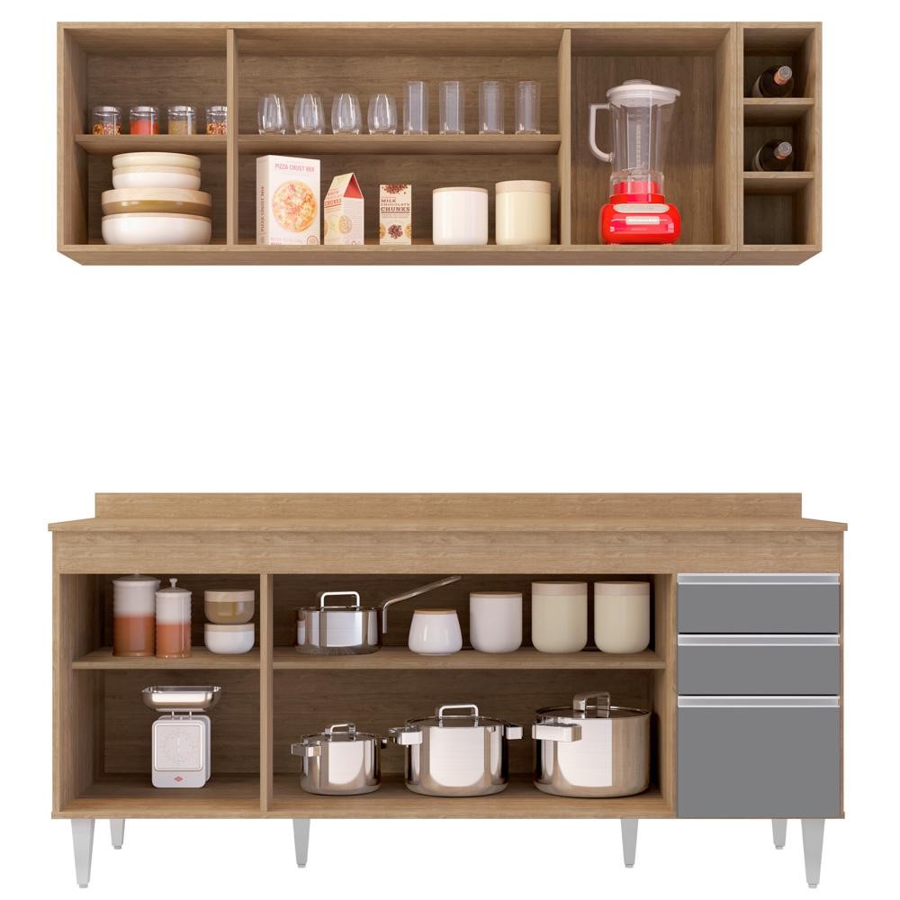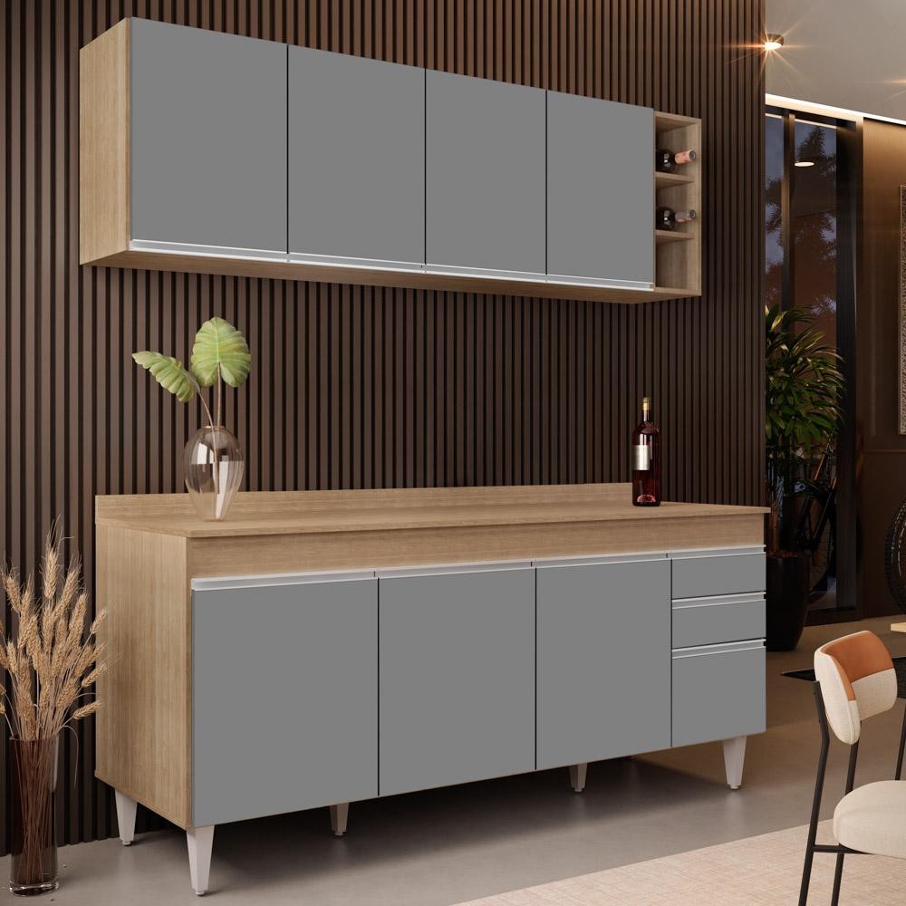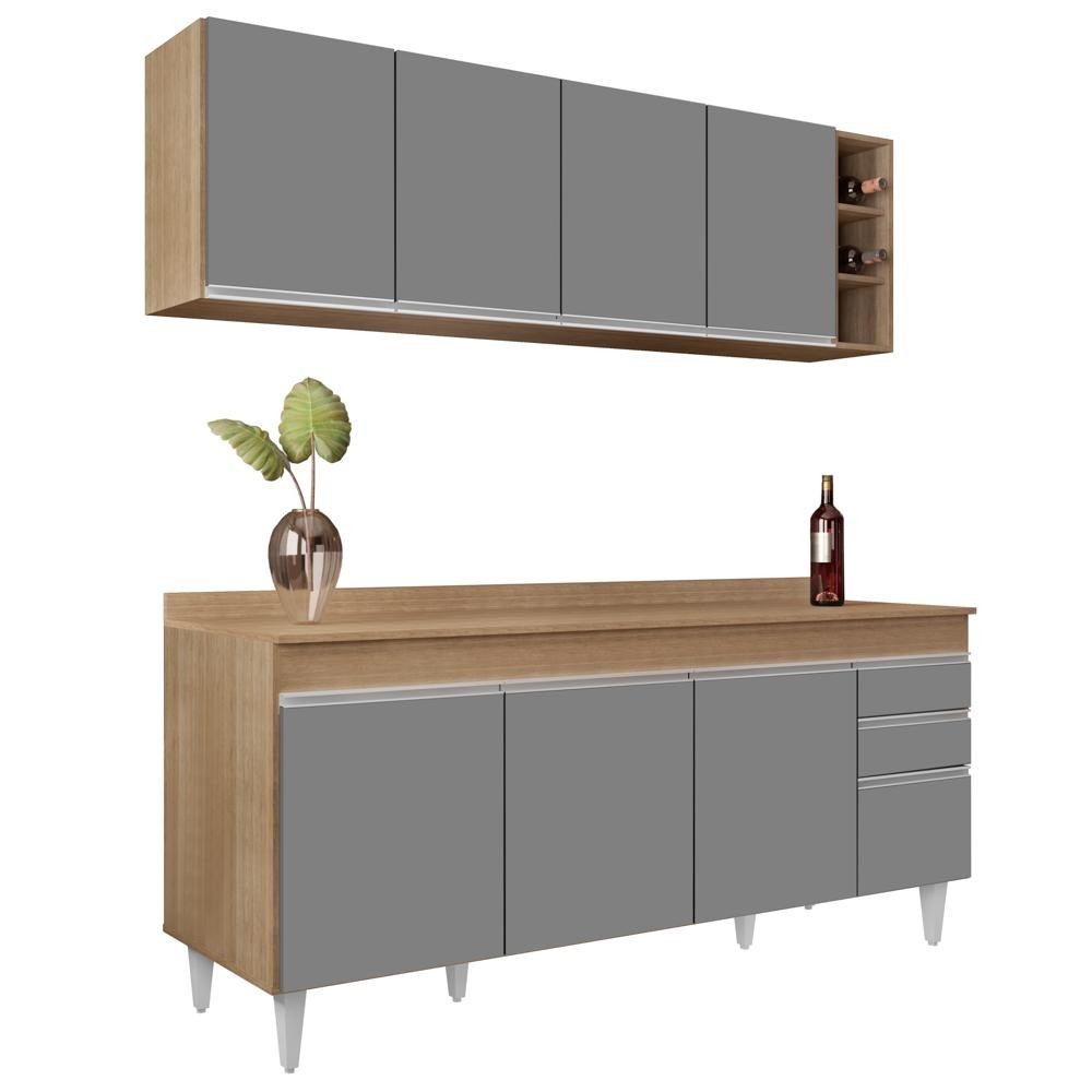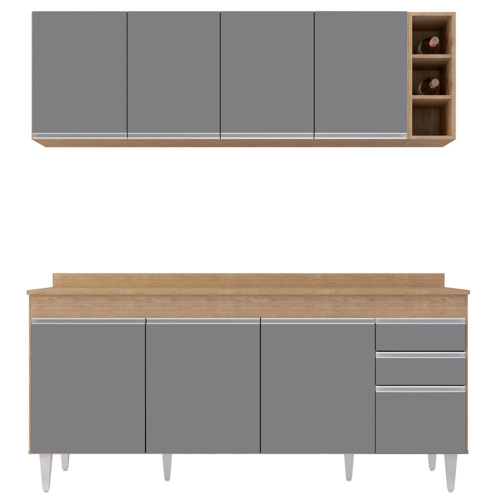Armário Nevada e Balcão 180cm com Tampo Dallas Castanho/Cza - Lumil