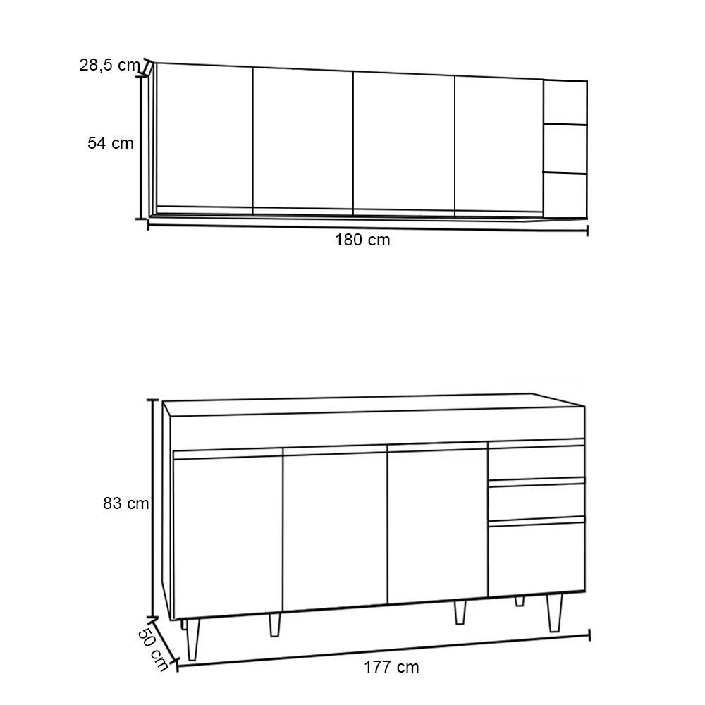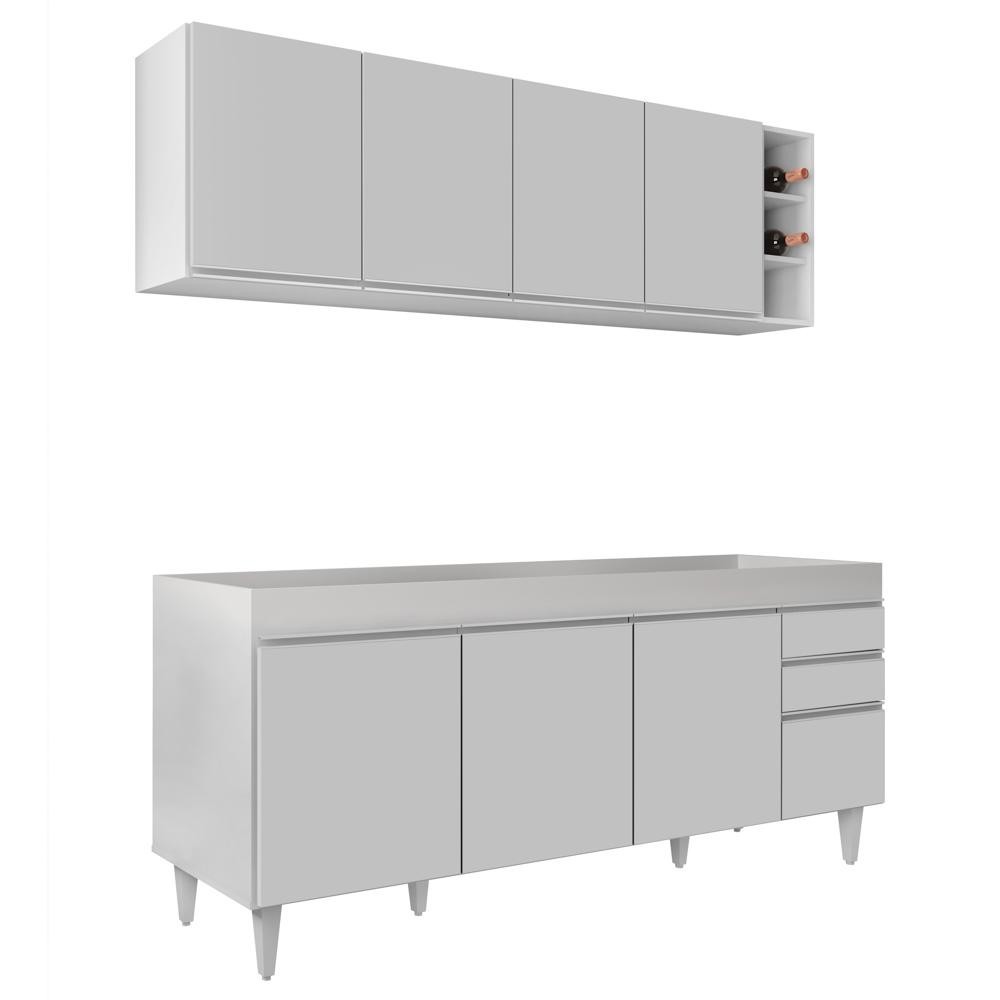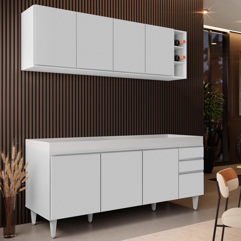 Armário Nevada e Balcão para Pia 180cm Dallas Branco - Lumil