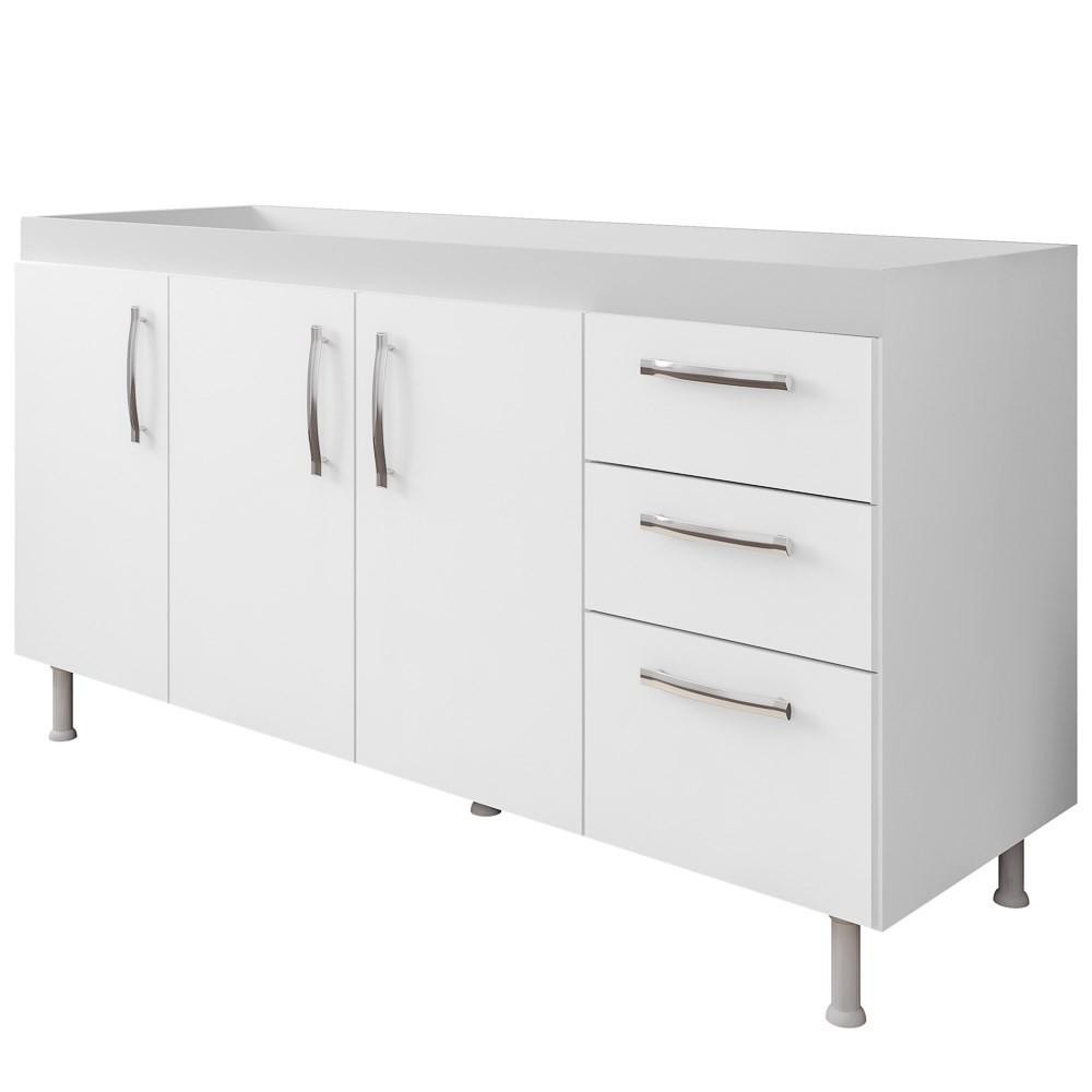 Balcão Gabinete Para Pia 160cm Nathan 3 Portas Branco - Nathy Móveis