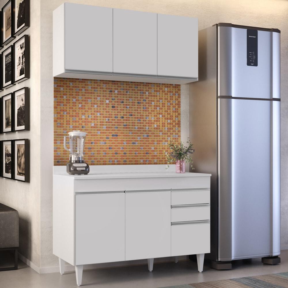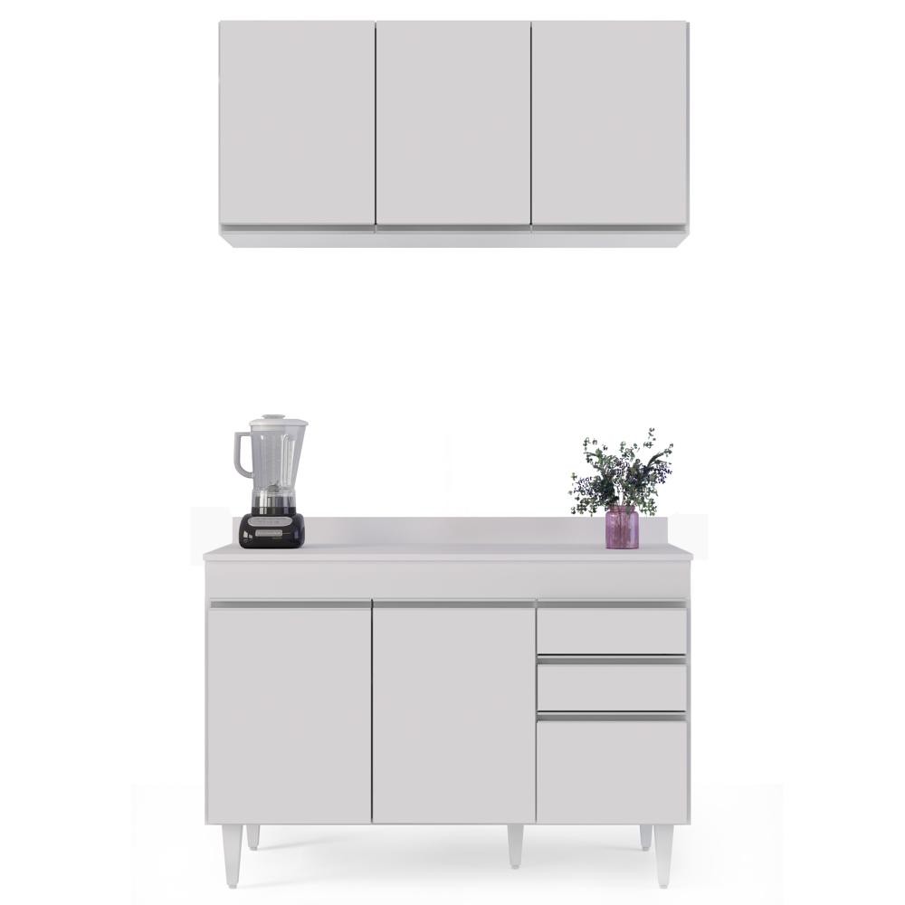 Armário Virgínia e Balcão com Tampo Michigan 120cm Branco - Lumil