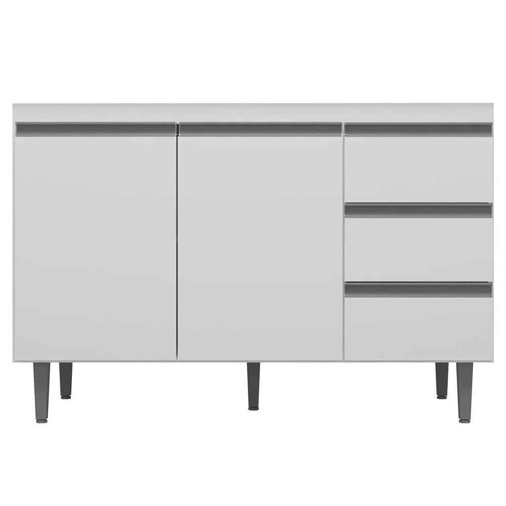 Balcão Gabinete Para Pia 120cm sem Tampo 2 Portas 3 Gavetas Andréia Branco - AJL Móveis