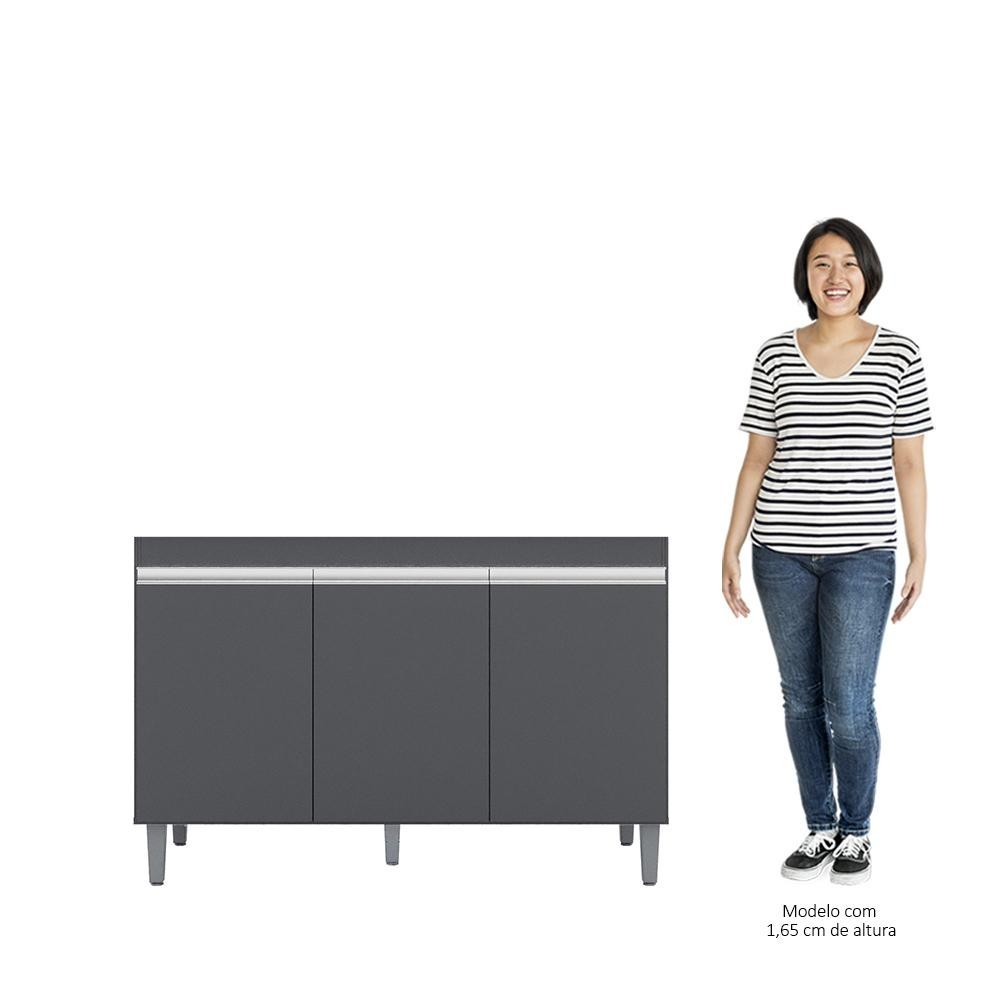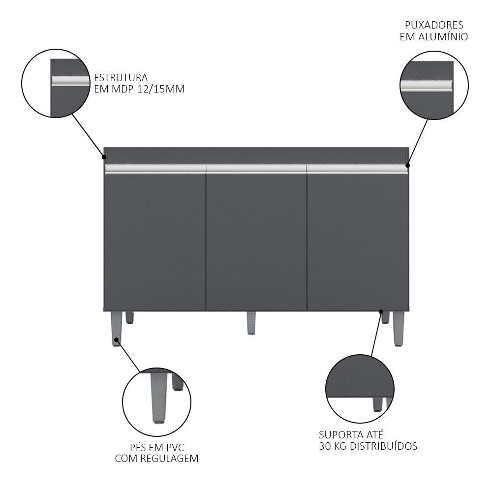 Balcão Gabinete Para Pia 120cm 3 Portas Sem Tampo Manu Cinza - AJL Móveis