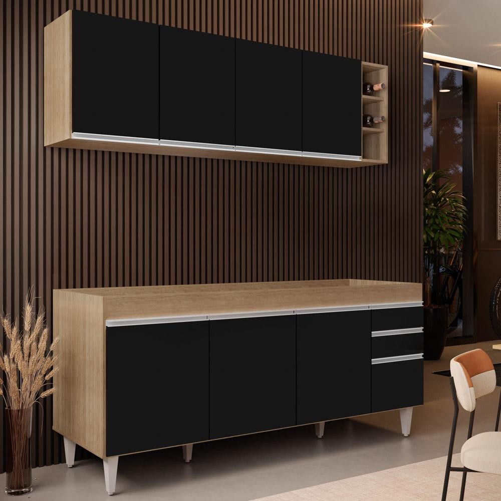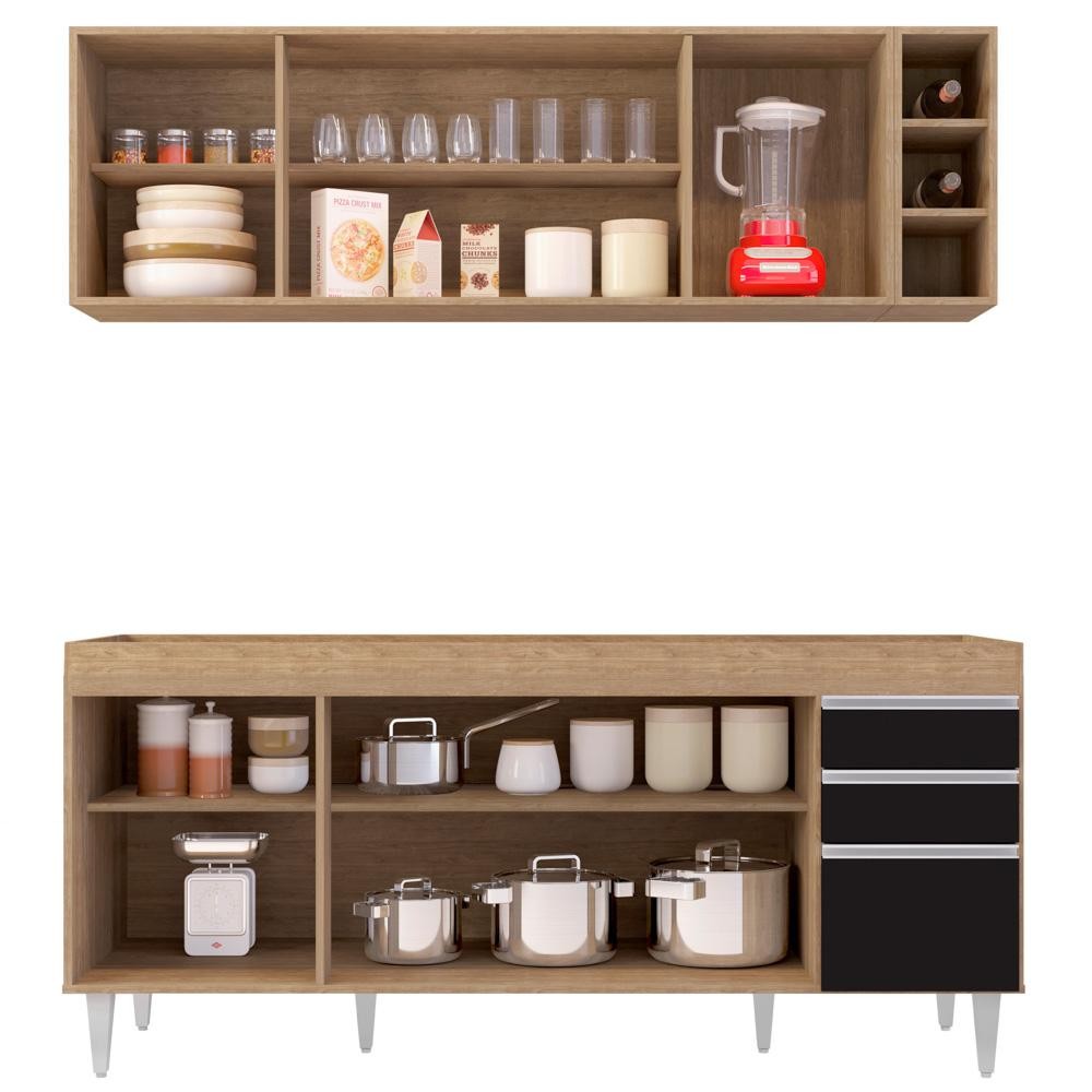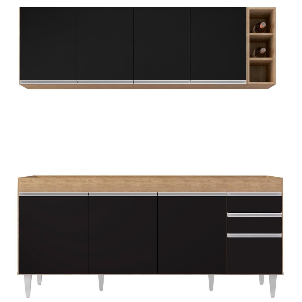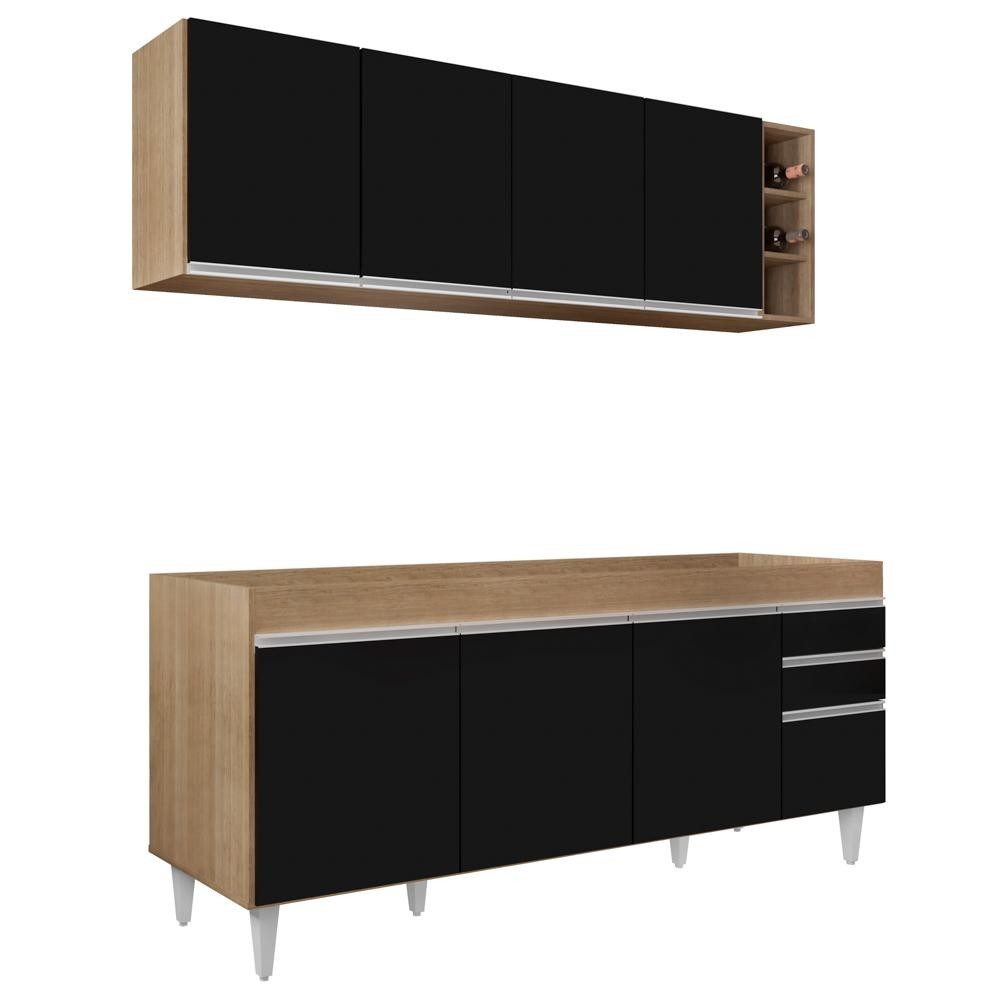 Armário Nevada e Balcão para Pia 180cm Dallas Castanho/Preto - Lumil