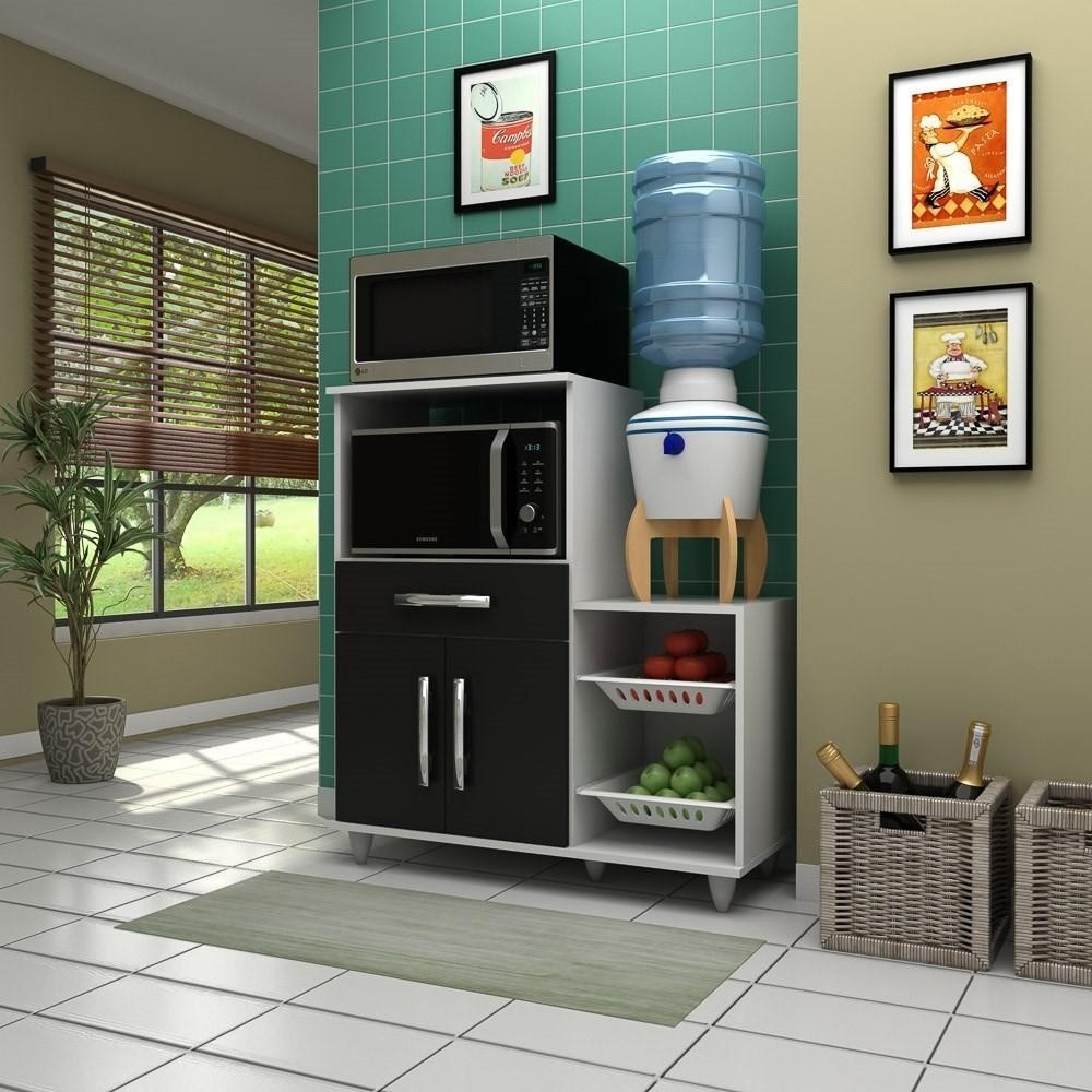 Armário Multiuso Irlanda com Fruteira e Nicho Micro-Ondas Branco/Preto - Lumil
