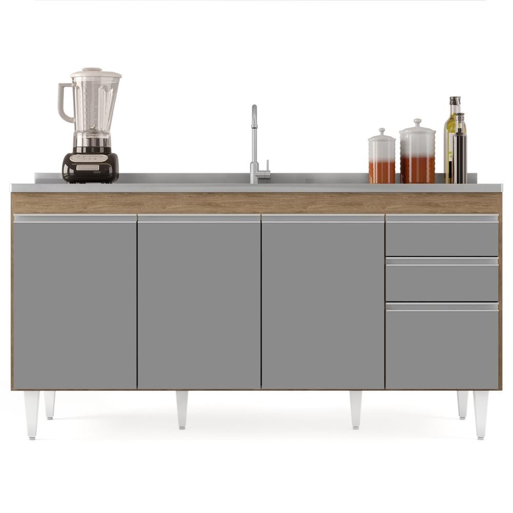 Balcão Gabinete 160cm Sem Tampo 4 Portas 2 Gavetas Arkansas Castanho/Cinza - Lumil Móveis