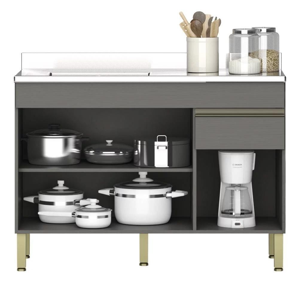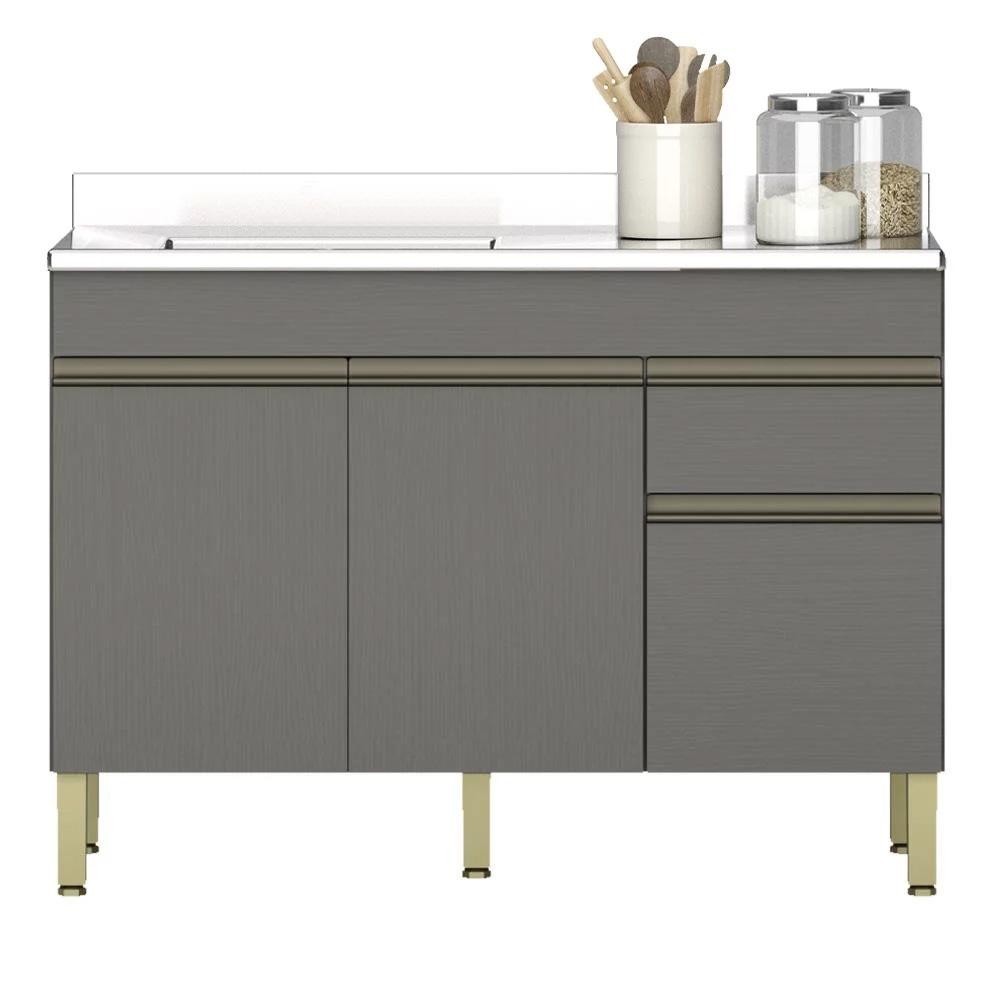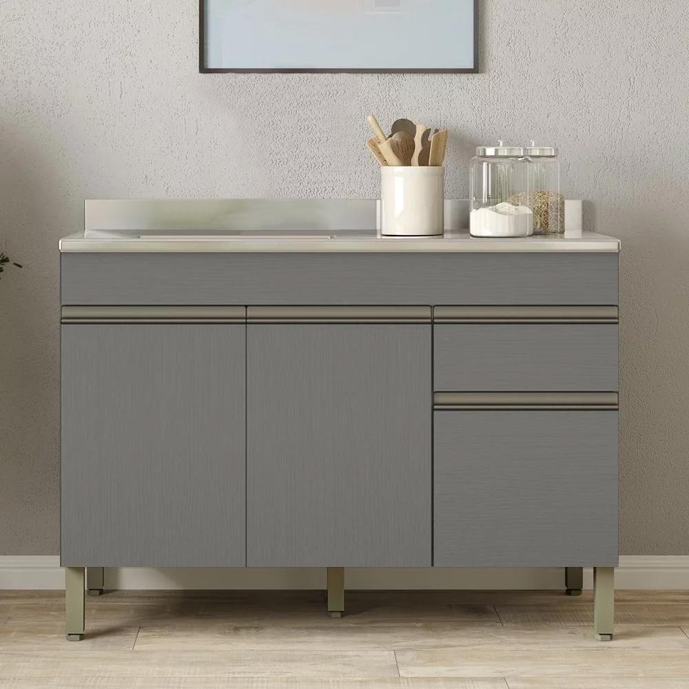 Balcão Gabinete 3 Portas com Pia 120cm Lina Z06 Gris - Mpozenato