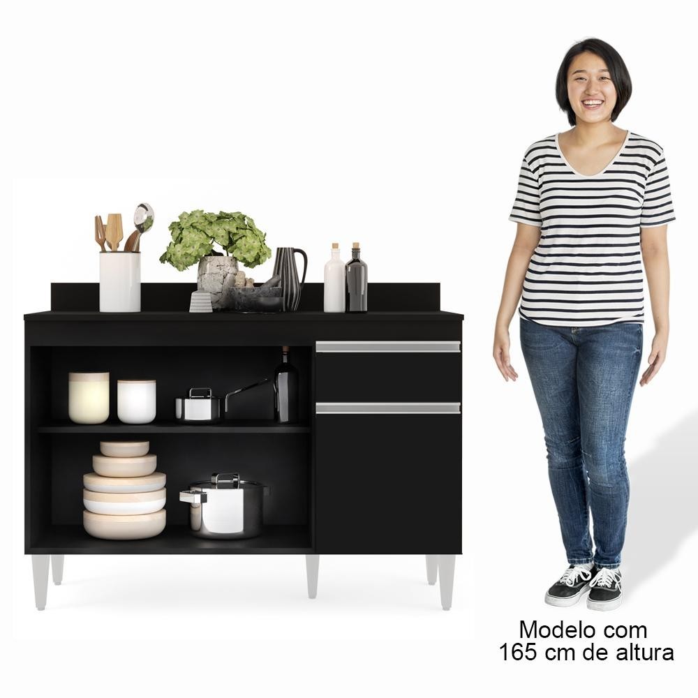 Balcão Gabinete 120cm Com Tampo 3 Portas 1 Gaveta Arizona Preto - Lumil Móveis