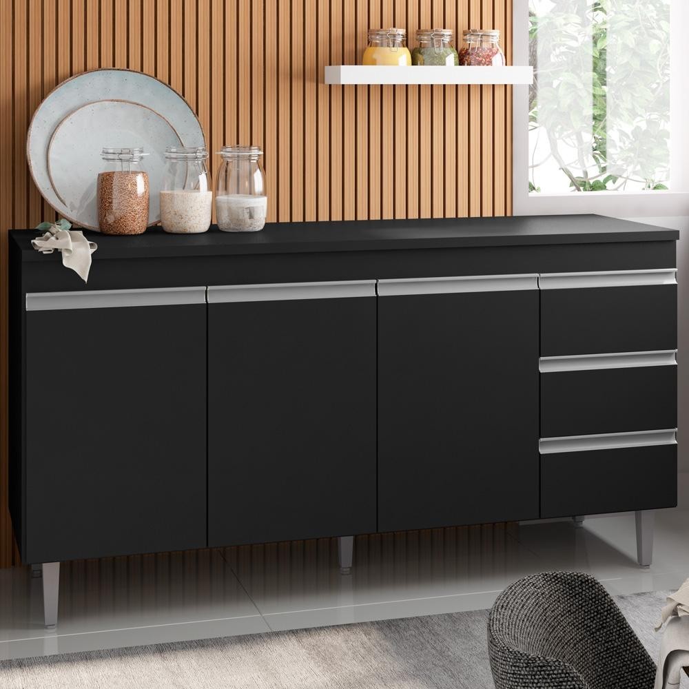 Balcão Gabinete Para Pia 160cm com Tampo 3 Portas Andréia Preto - AJL Móveis