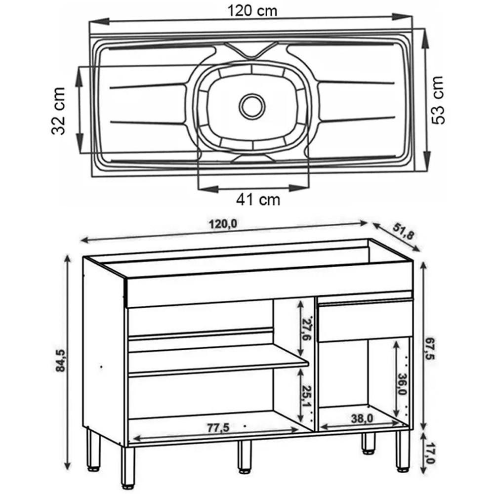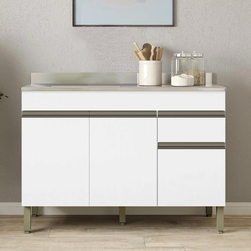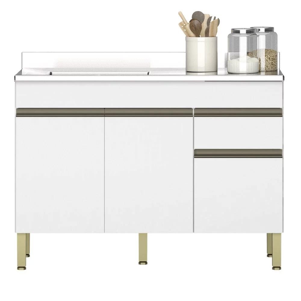 Balcão Gabinete 3 Portas com Pia 120cm Lina Z06 Supremo - Mpozenato
