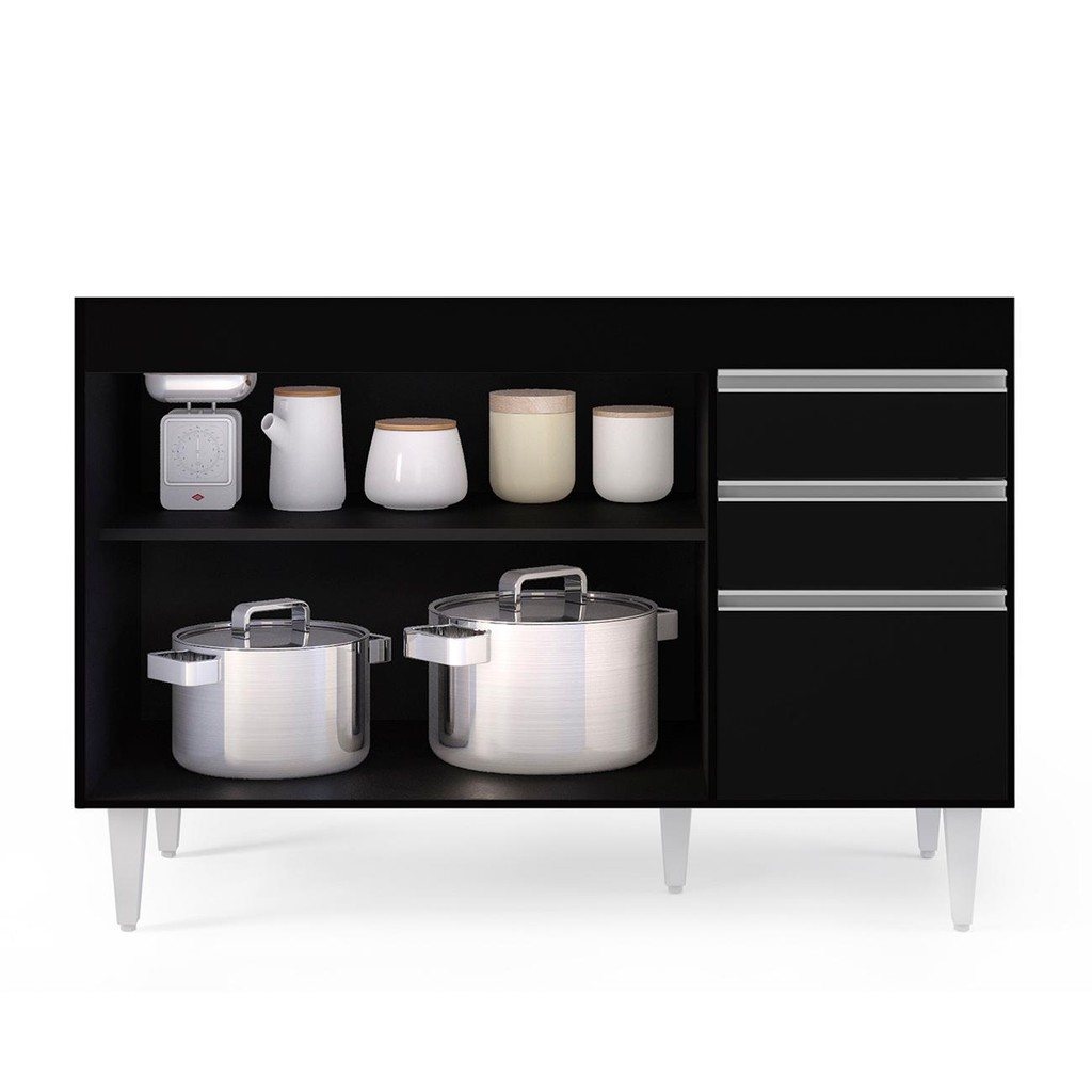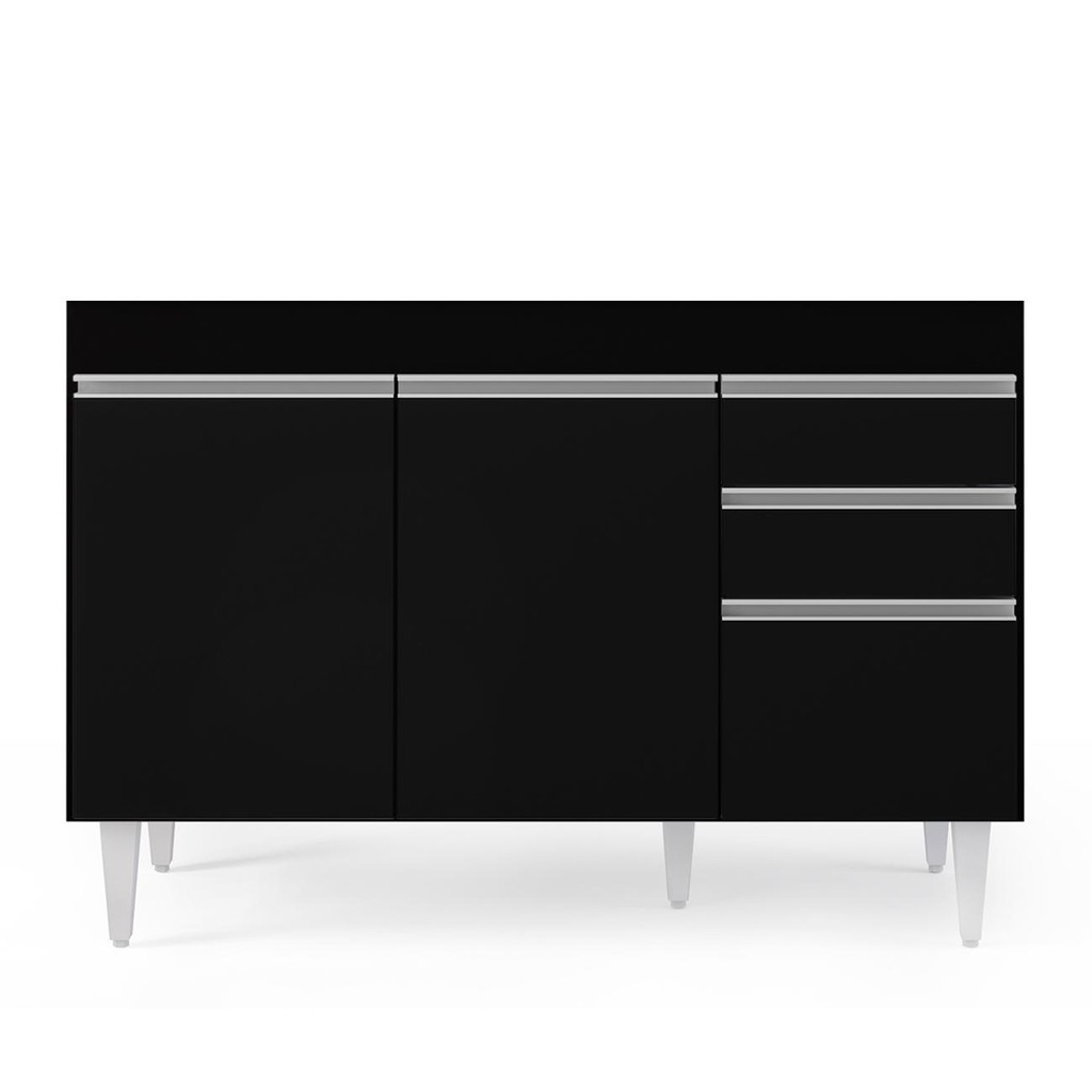 Balcão Gabinete Para Pia 120cm sem Tampo 3 Portas 2 Gavetas Michigan Preto - Lumil