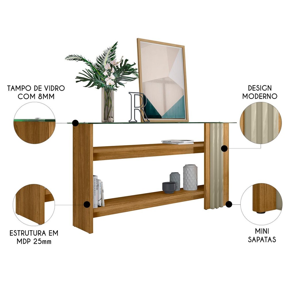 Aparador de Sala Com Prateleiras 150cm Fire Z10 Cumaru/Opala - Mpozenato