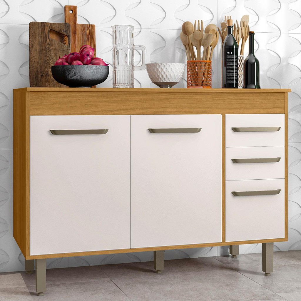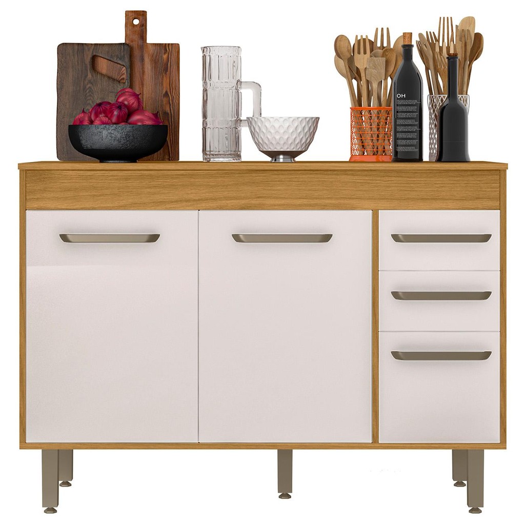 Balcão de Cozinha Com Tampo 120cm Emily Freijó/Off Acetinado Z44 - Mpozenato