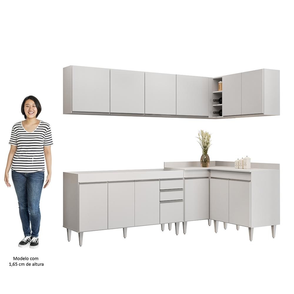 Armário de Cozinha Modulado de Canto 6 Peças CP31 Balcão sem Tampo Branco - Lumil